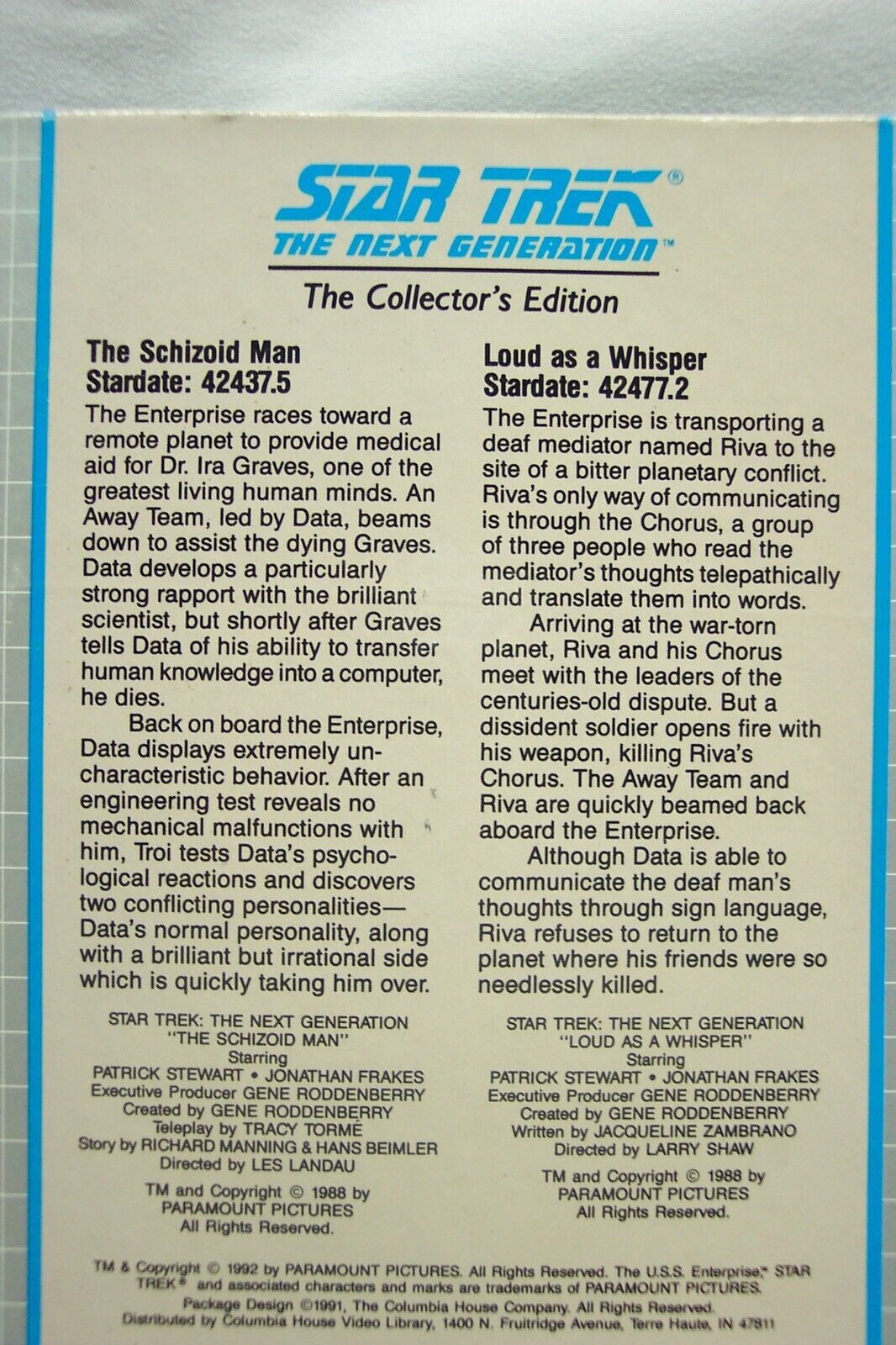 1992 STAR TREK The Next Generation The Schizoid Man / Loud As Whisper VHS VIDEO