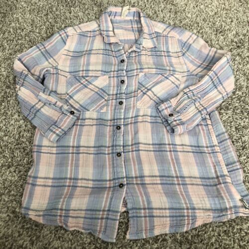 Seven 7 Women's Plaid & Check High & Low Shirt Blouse Size Small