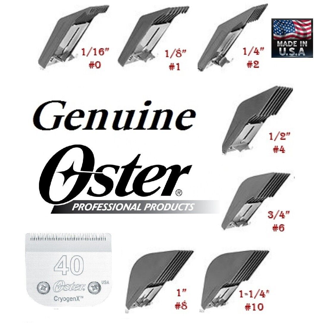 *Listing is for the Full 7 piece set of Genuine Oster Combs (also known as Clip On, Guide, Attachment, Guard combs) and ONE Genuine Oster CryogenX #40 blade