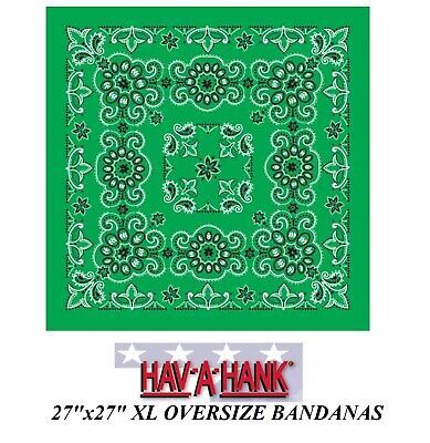 12 Hav-A-Hank XL BIG OVER SIZE GREEN PAISLEY 27" BANDANA Head Face Mask Scarf