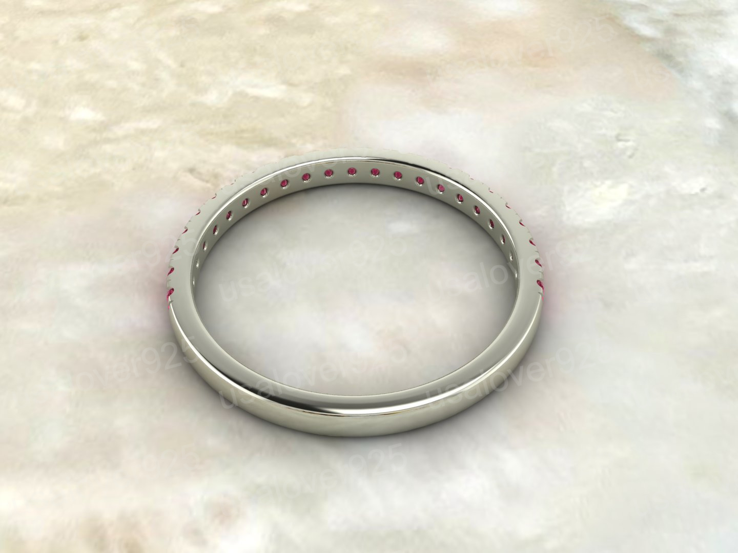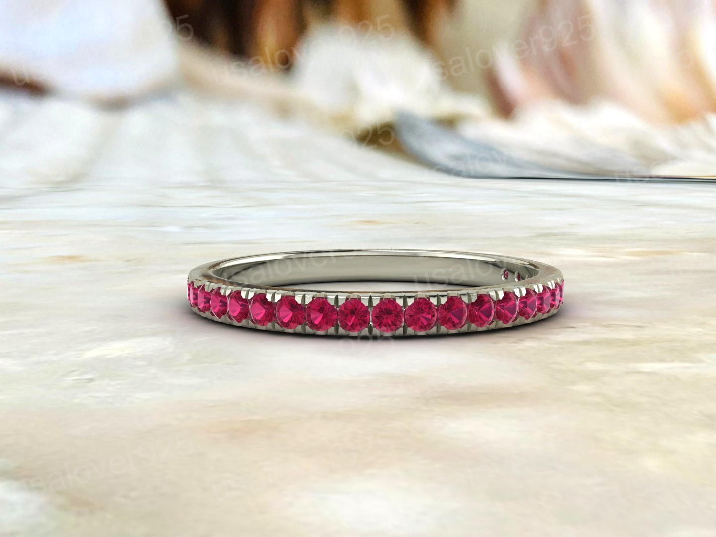 Natural Pink Ruby Gemstone Half Eternity Sterling Silver Women Band Ring Jewelry