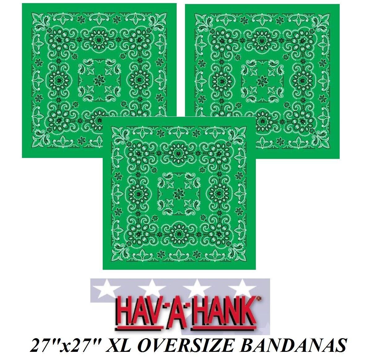 3 Hav-A-Hank XL BIG SIZE GREEN PAISLEY 27" BANDANNA Head Wrap Face Mask Scarf b