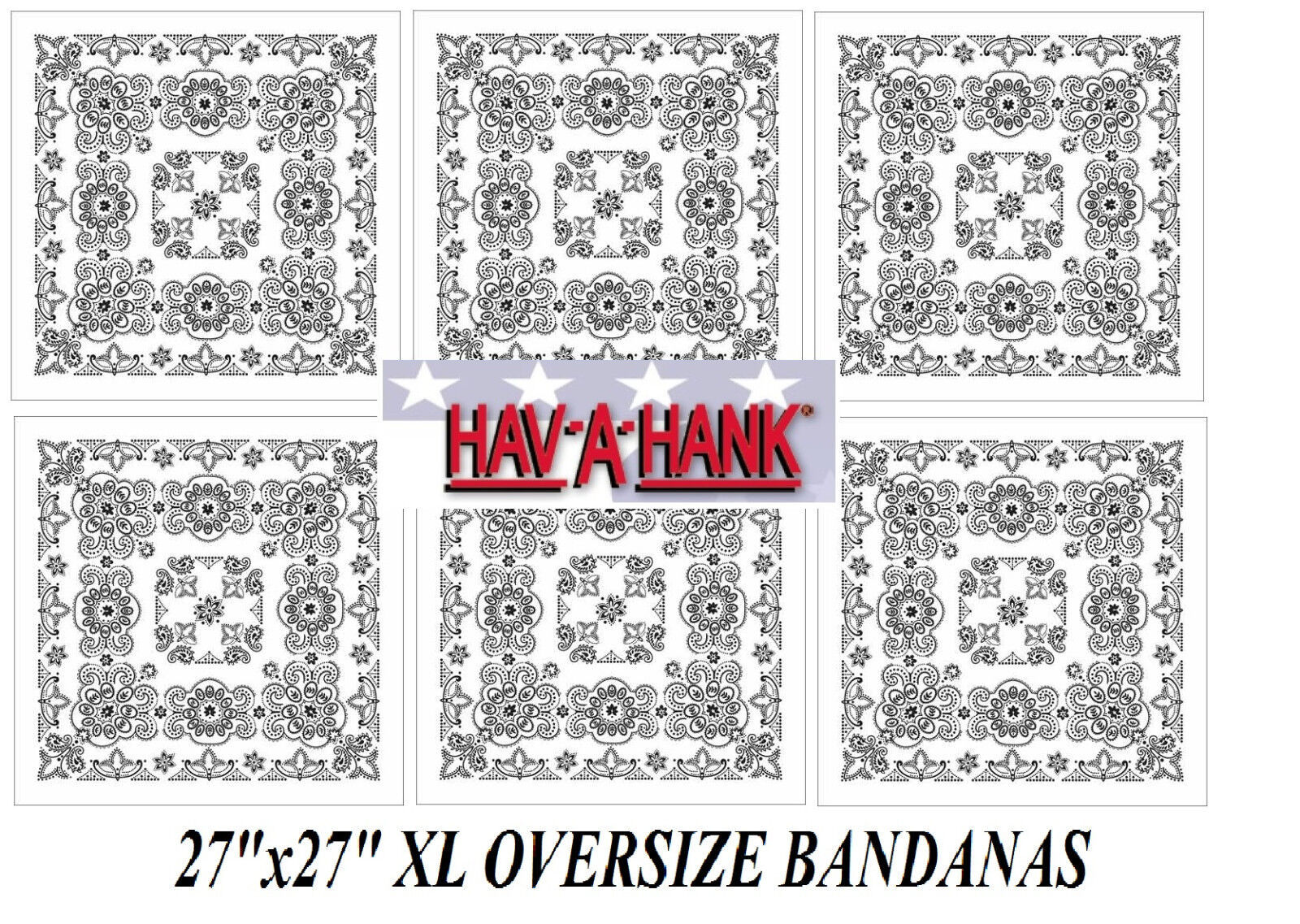 6 Hav-A-Hank XL BIG SIZE WHITE PAISLEY 27" BANDANNA Head Wrap Face Mask Scarf b