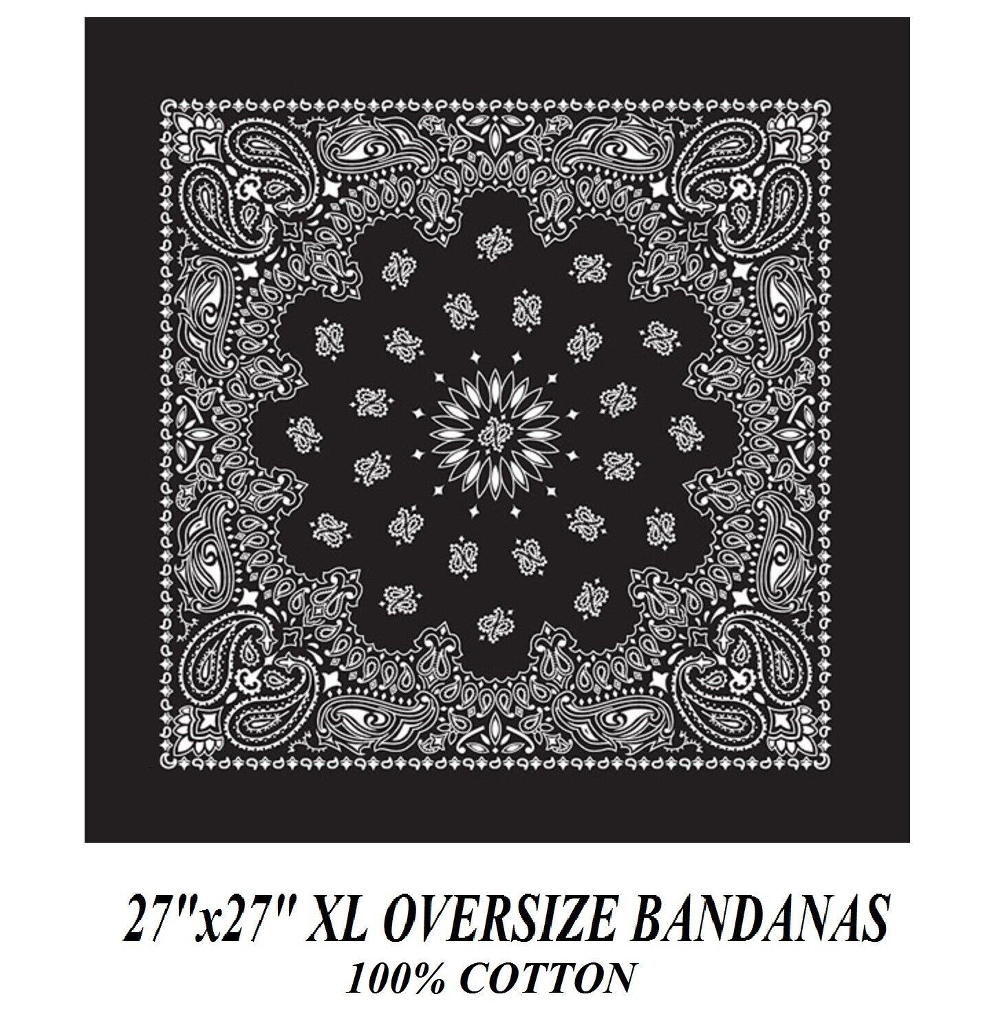 3-Hav-A-Hank BLACK XL BIG PAISLEY 27" BANDANA Head Neck Wrap Scarf Face Mask