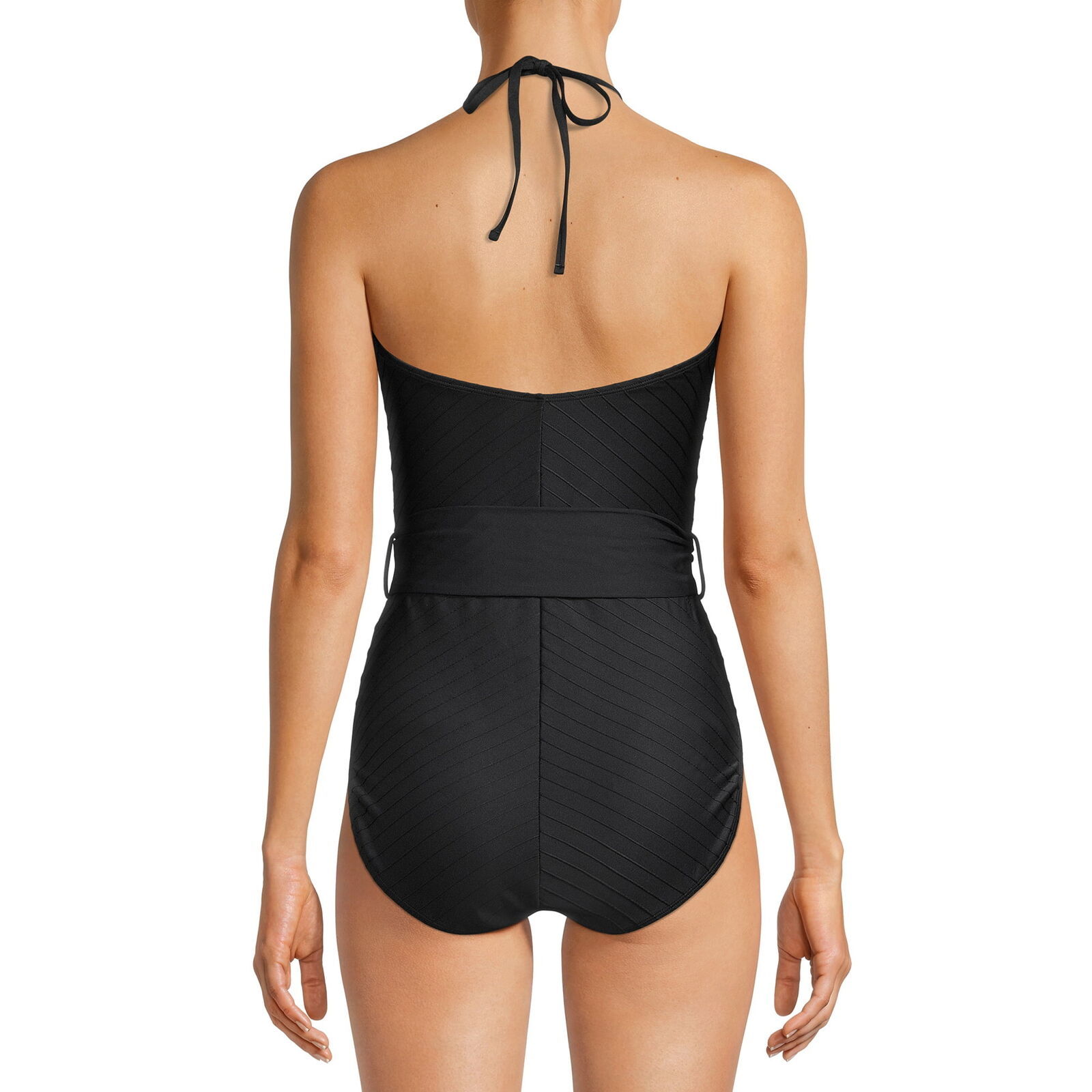 Time and Tru Womens Chevron Halter One Piece Swimsuit Size S (4-6) Color Black