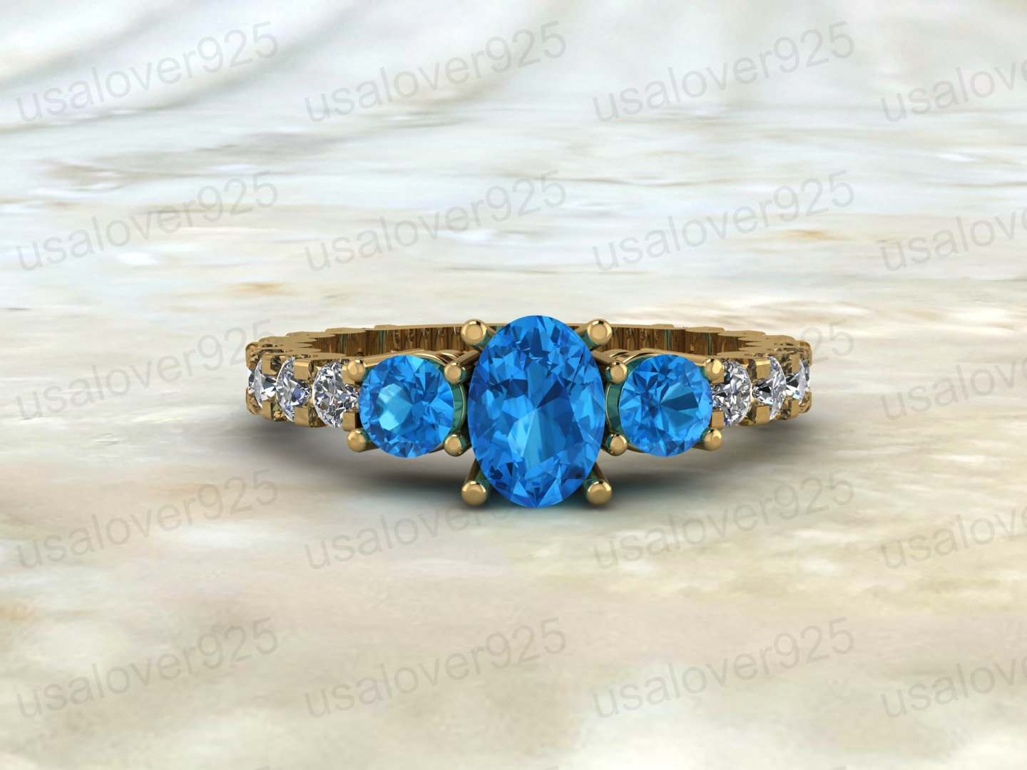 Natural Topaz Gemstone Sterling Silver Women Engagement Ring For Women Jewelry