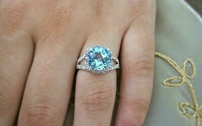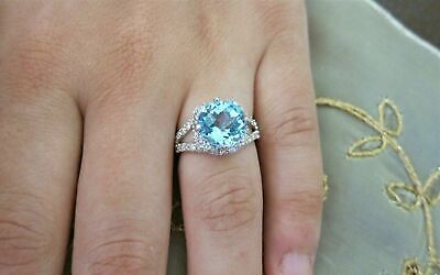 Anillo de compromiso de aguamarina azul con solitario de talla redonda de 3...