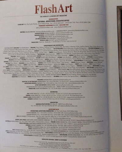 Flash Art International May/April 2009 #266. Ex-lib in good condition. Advertising art from around the world. ISSN 0394-2493. Feel free to email with questions. I do combine shipping on multiple purchases. Have a great day!