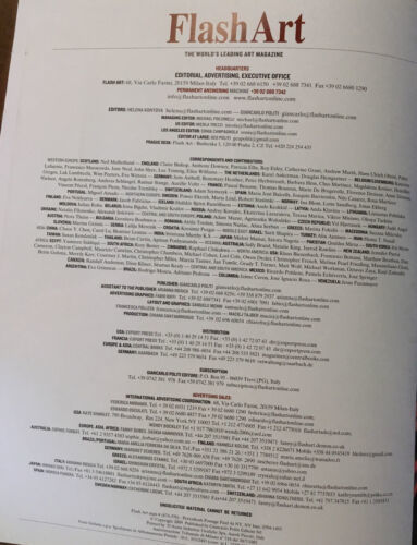 Flash Art International July-September 2009 #267. Ex-lib in good condition. Advertising art from around the world. ISSN 0394-2493. Feel free to email with questions. I do combine shipping on multiple purchases. Have a great day!