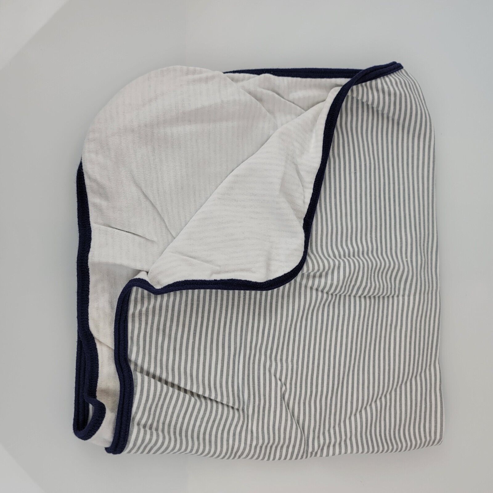 Hudson Baby HB White Gray Navy Blue Thin Stripe Cotton 1-ply Baby Boy Blanket