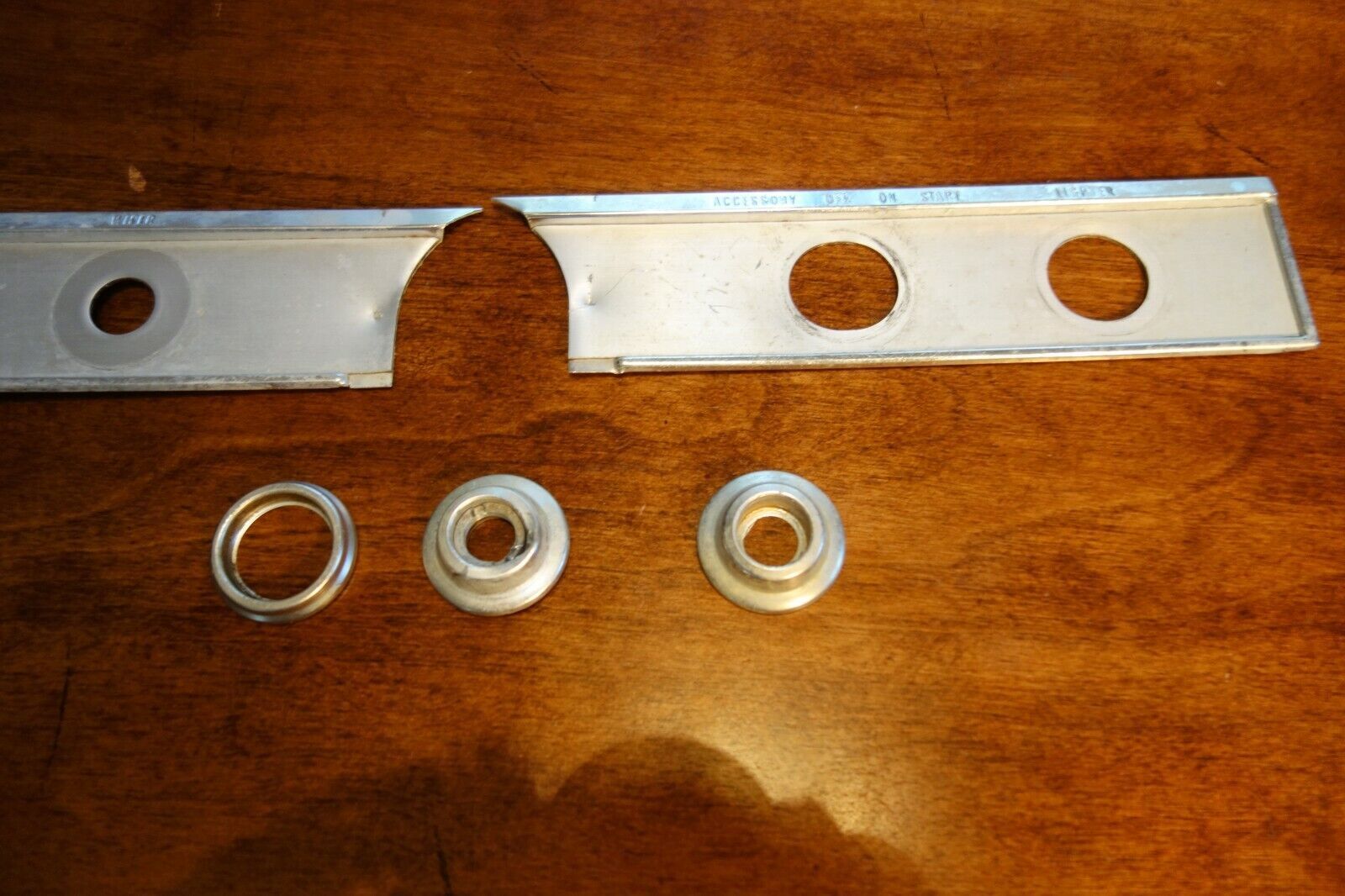 Includes the trim bezels that goes around the dash switches as well attaching hardware mounting studs. There are a few small dings as shown in pictures.