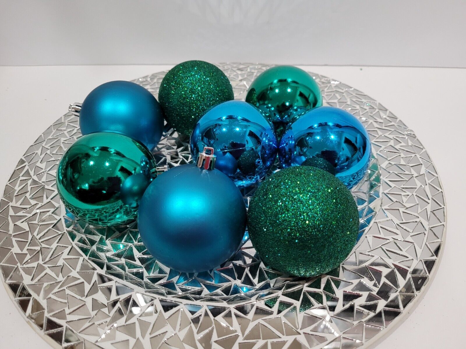 Up for sale we have these stunning ornaments for your peacock theme decor. There are 8 ball ornaments in the set. These are sooo pretty and would look great on a tree, garland or wreath. You will receive 2 of each color shown for a total of 8. They measure approx 3" including the square tip. These will not come in original box to be able to ship in a smaller box and keep shipping cost down.