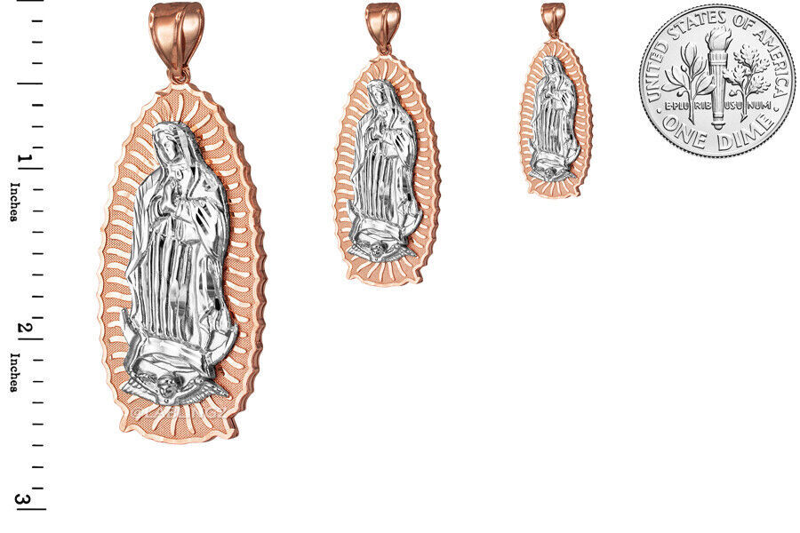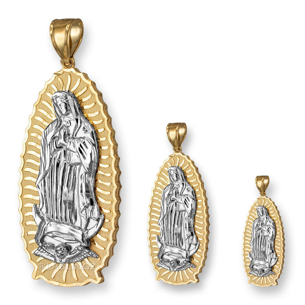 10K Two-Tone Gold Our Lady of Guadalupe Virgin Mary Pendant (S/M/L)