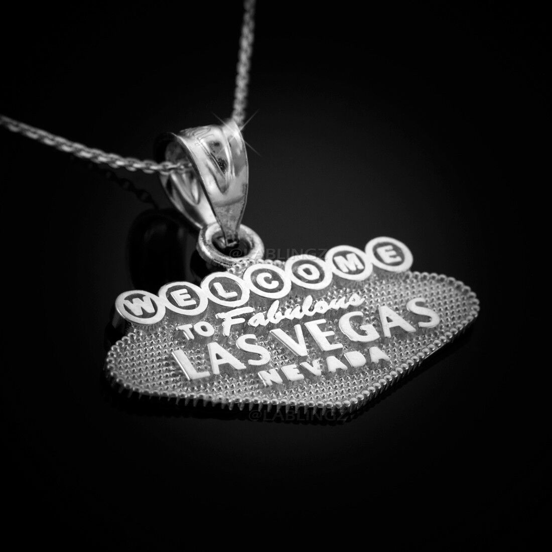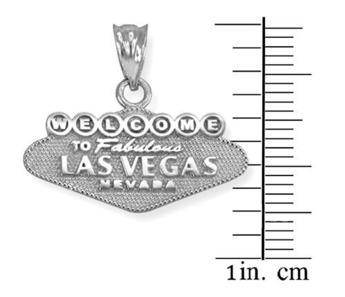 10K White Gold Las Vegas Welcome Sign Reversible Charm Pendant Necklace