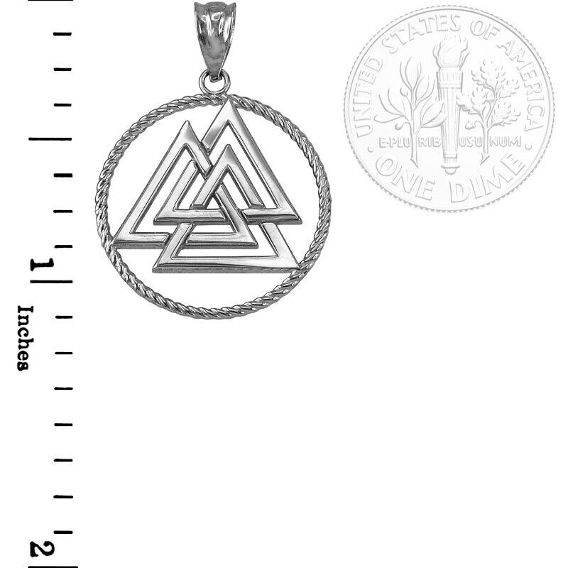 Open Design Viking Valknut Pendant Necklace in White Gold