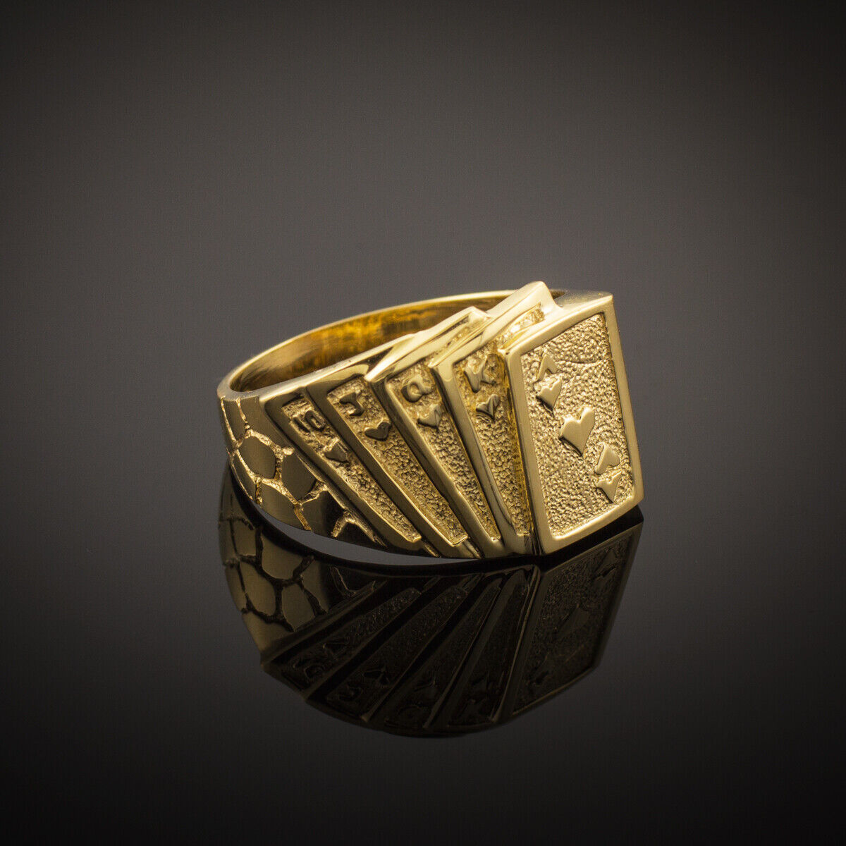 Solid Gold Royal Flush Poker Nugget Ring