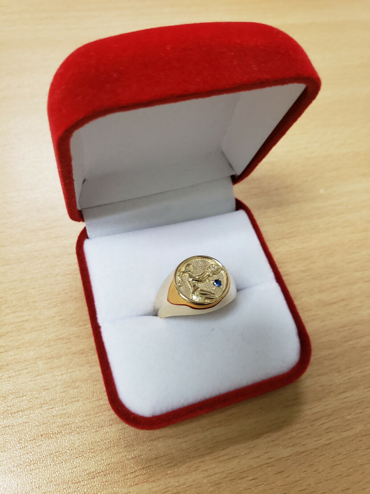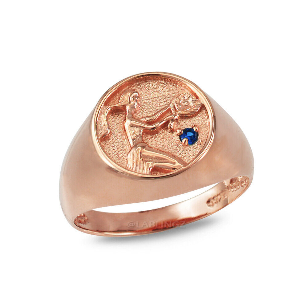 10K Gold Genuine Blue Sapphire Birthstone Virgo Zodiac Unisex Ring