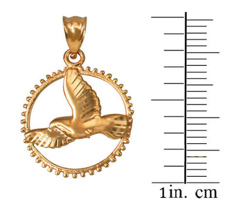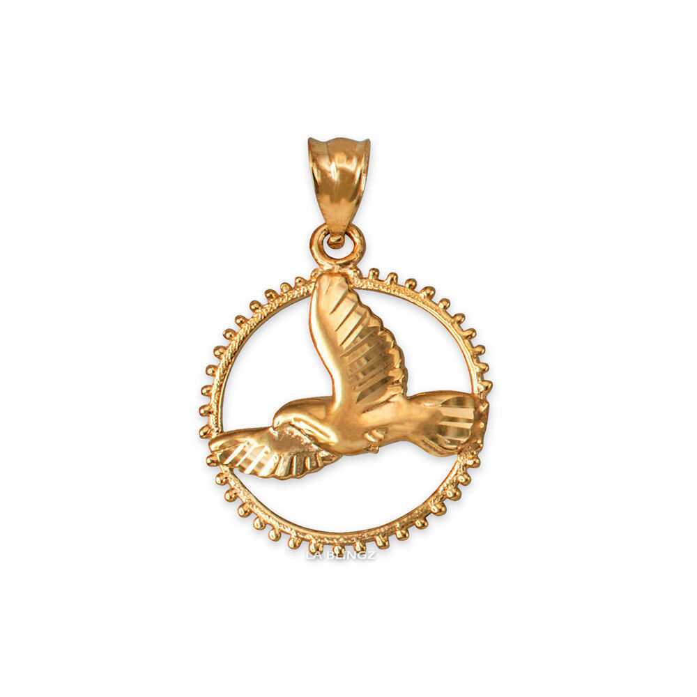 10K Yellow Gold Dove of Peace Round DC Pendant Necklace
