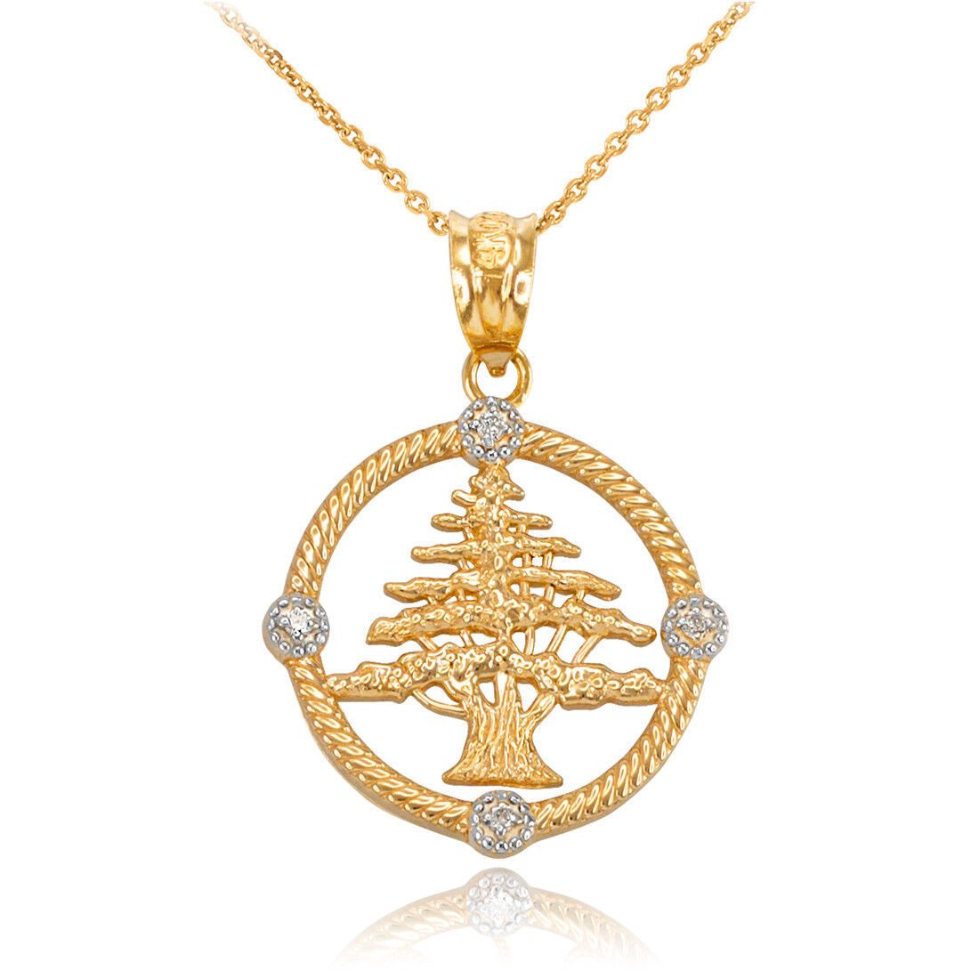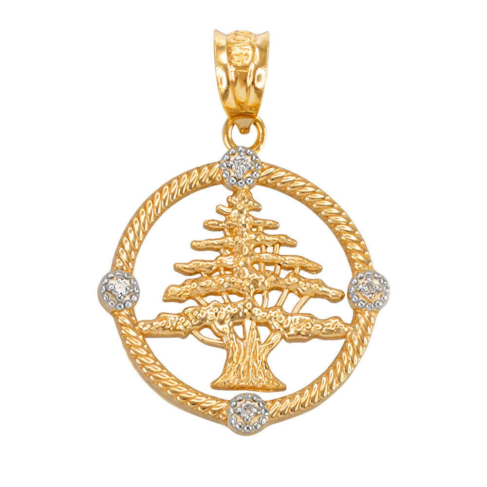 Gold Cedar Tree of Lebanon Diamond Pendant Necklace (10k, 14k)
