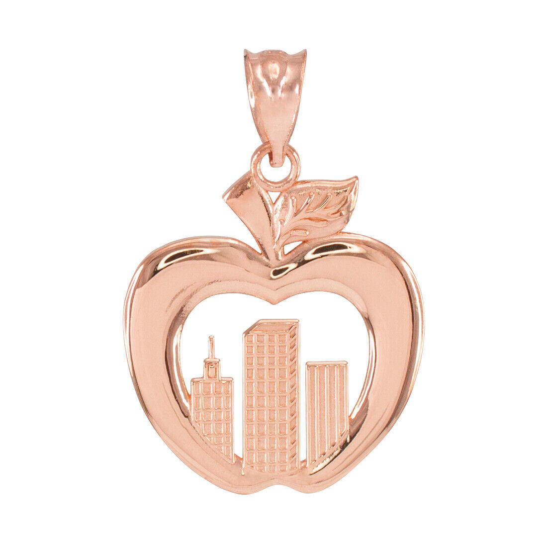 10K Rose Gold New York City Big Apple Pendant Necklace