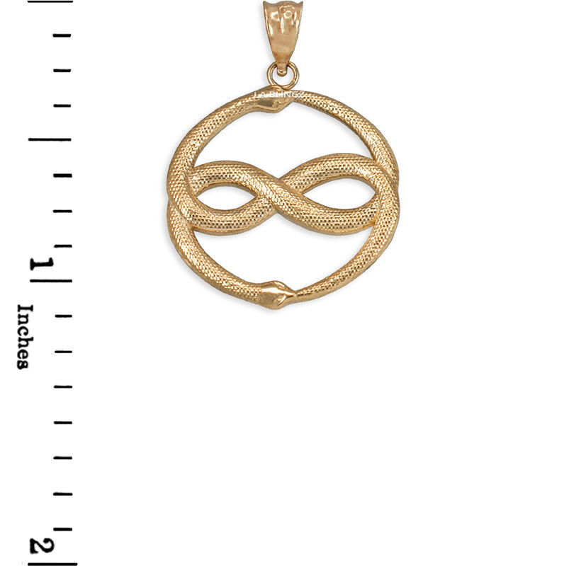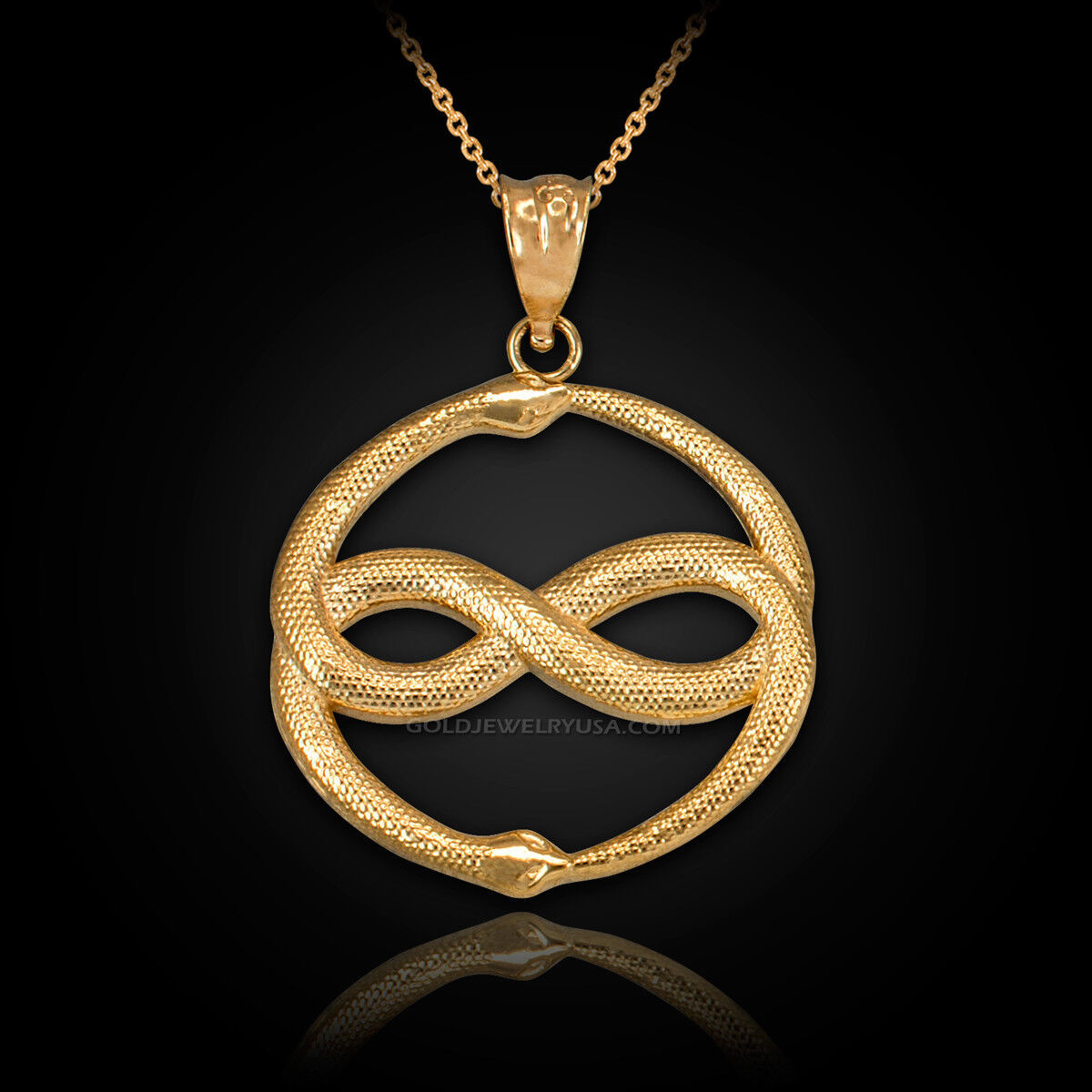 10K Yellow Gold Double Ouroboros Infinity Snakes Pendant Necklace