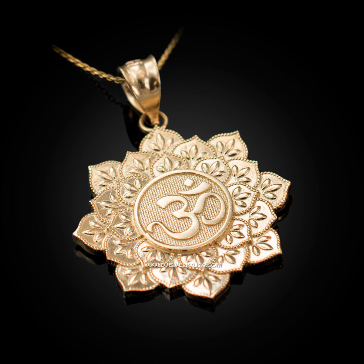 10K Yellow Gold Om Lotus Mandala Pendant Necklace