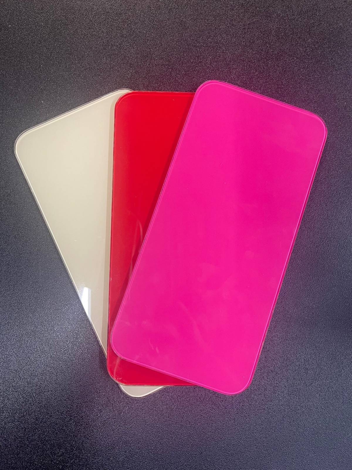 The primary color you choose will be seen on the acrylic side. If you chose to add felt along with the color, the felt color you choose will be seen on the back side. For example if you choose a blue primary with a black felt. The acrylic top will look blue and the bottom will be black felt. All corners and edges are rounded and designer ready so it doesn't damage your liner.