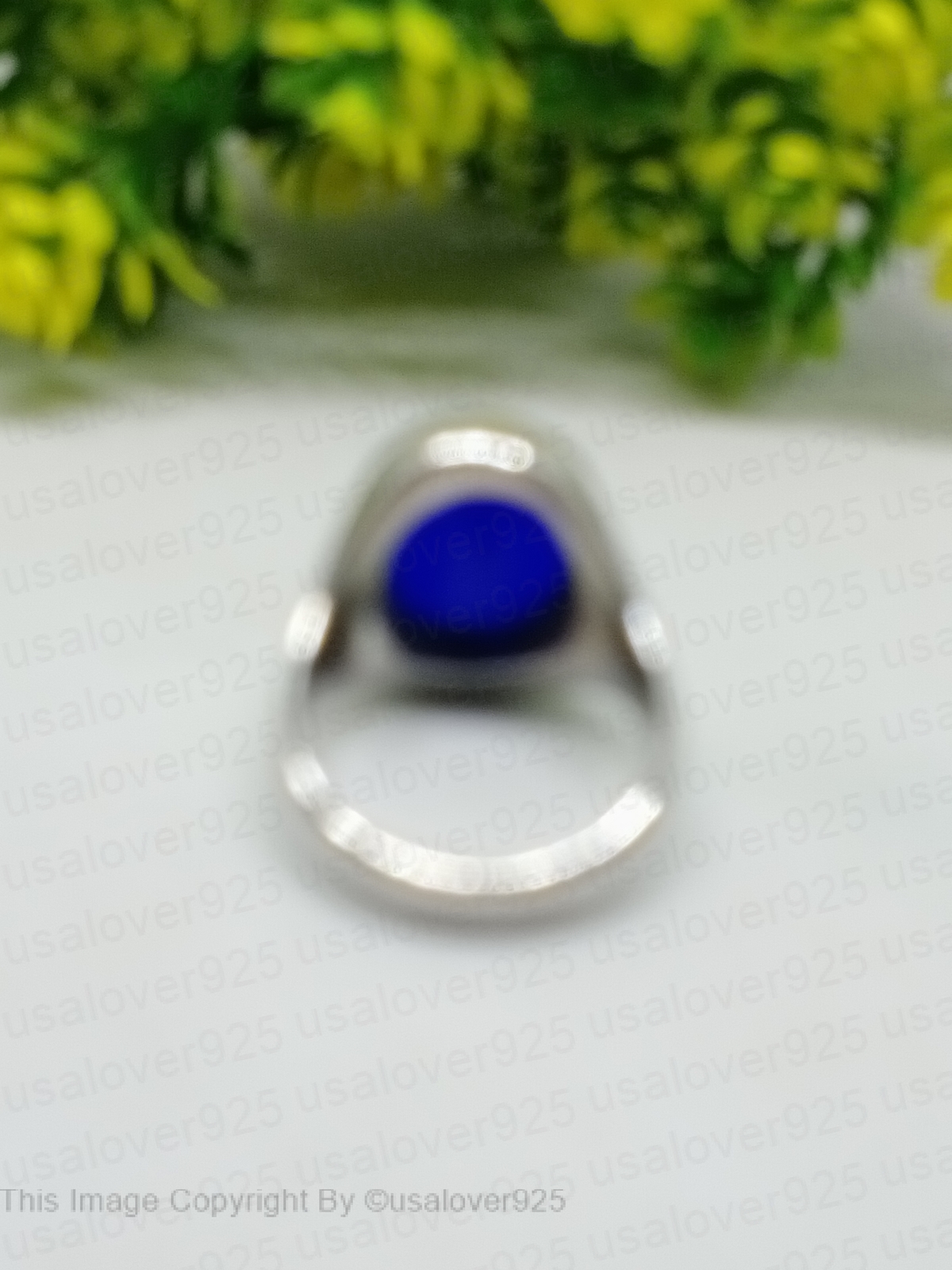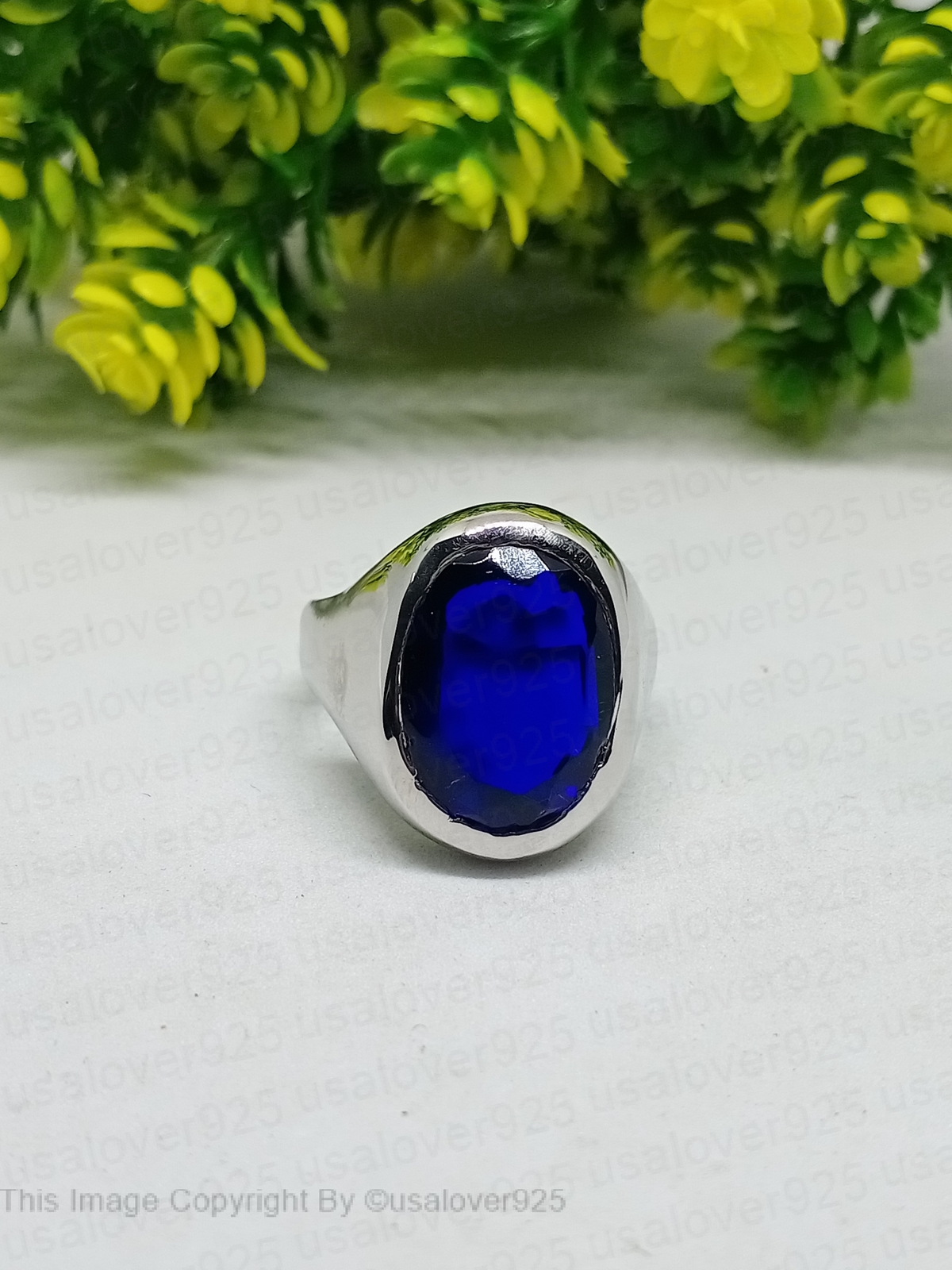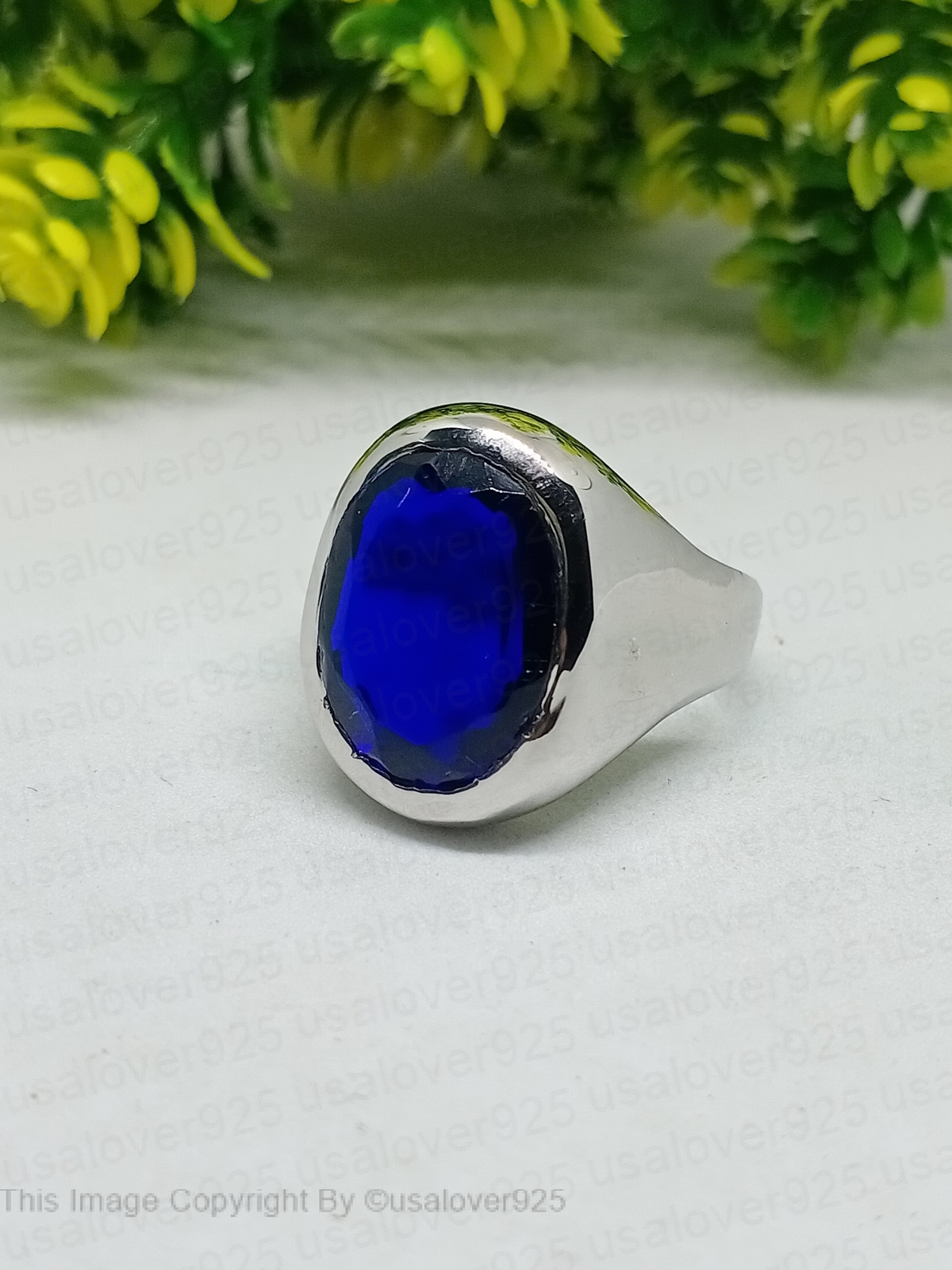 Natural Dark Blue Sapphire Oval Gemstone Sterling Silver Handmade Men Ring