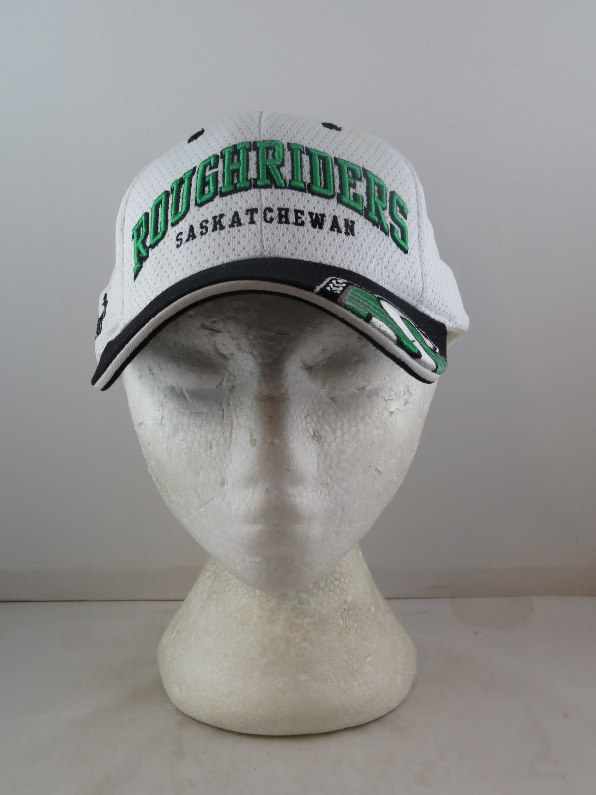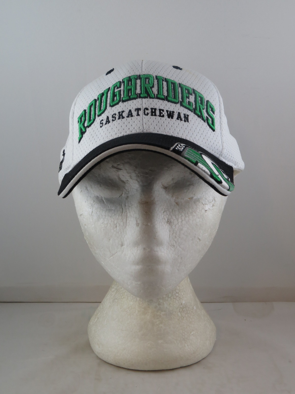 Up for sale is a vintage Saskatchewan Roughriders hat by Puma. It has a white base colour with a black brim. The front of the hat has Roughriders stitched in black and green. The left side of the brim has the Riders logo stitched in. What a great vintage hat do not miss out on it.