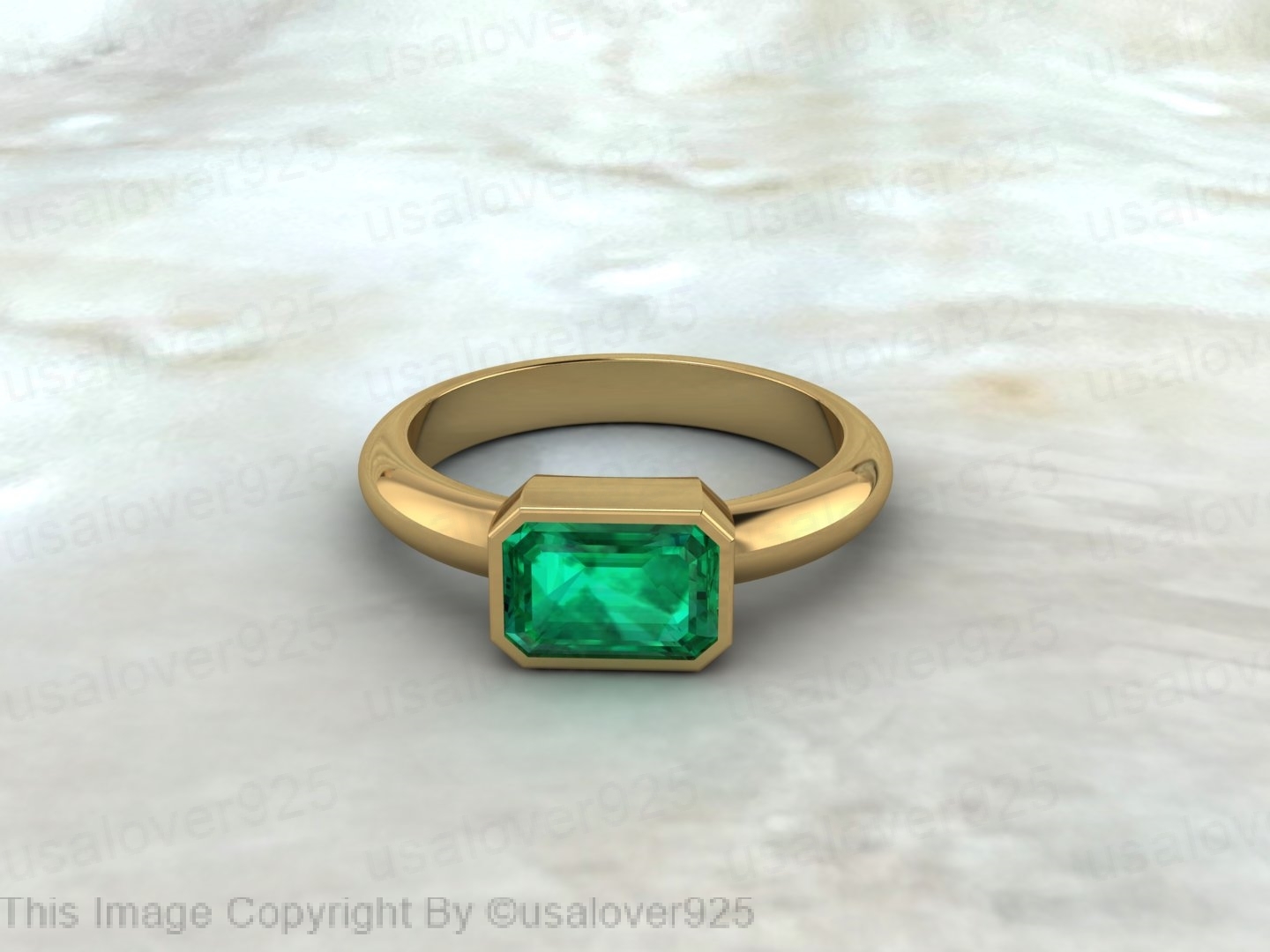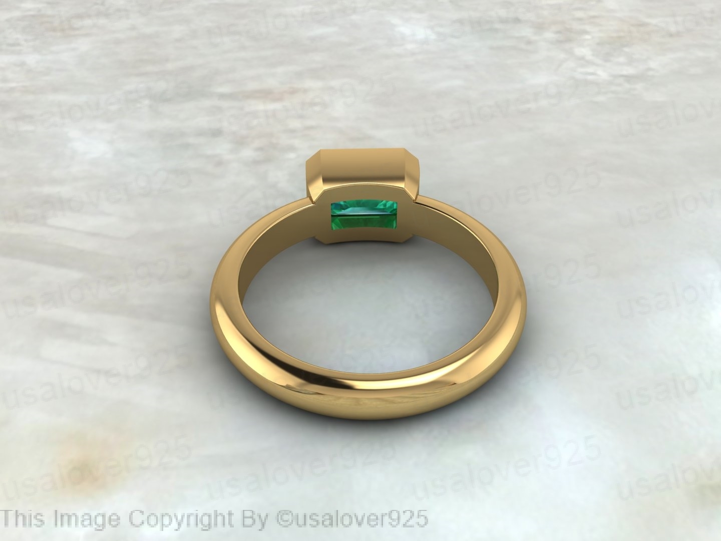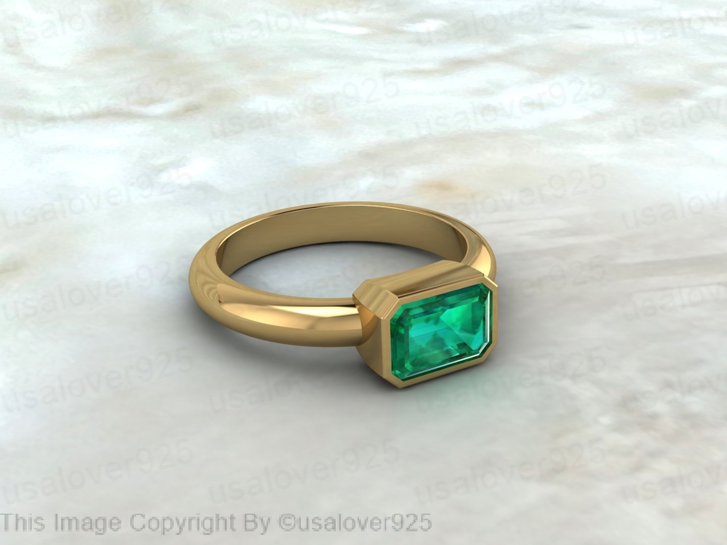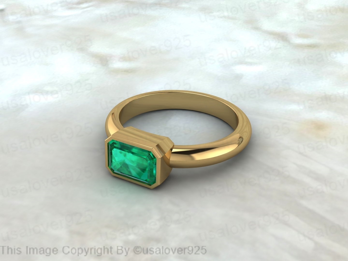 Natural Octagon Green Emerald Gemstone Sterling Silver Handmade Women Ring