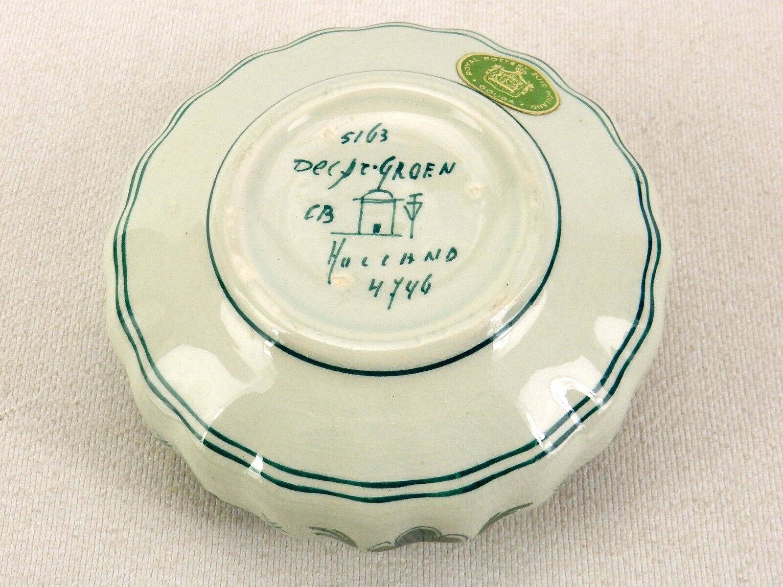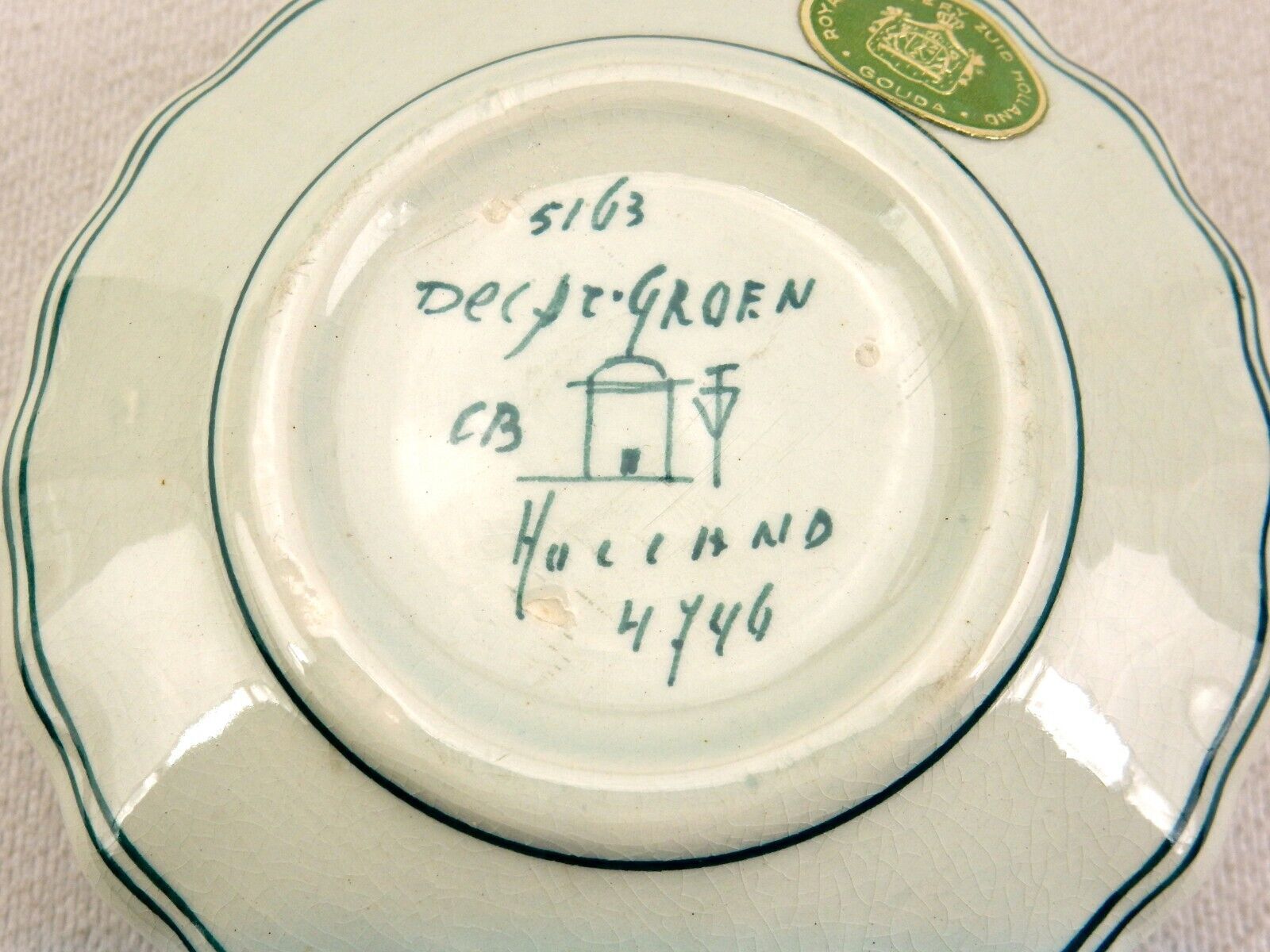 Marked on bottom "Delft Groen" and "Holland 4746" with artisan hallmarks