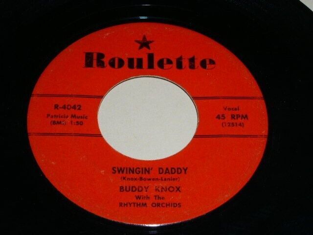 This is the original, vintage 45 rpm release of Buddy Knox with the Rhythm Orchids', "Swingin' Daddy". Flipside: "Whenever I'm Lonely". Record label Roulette 4042.
