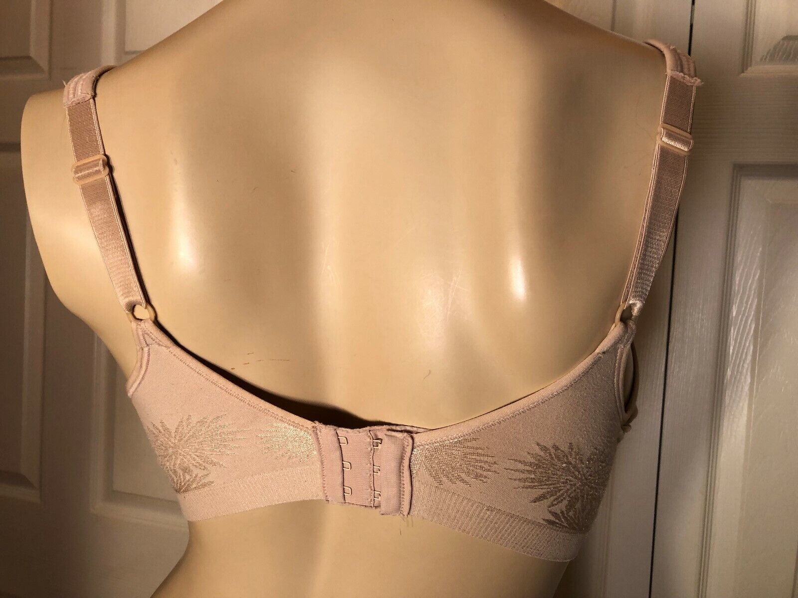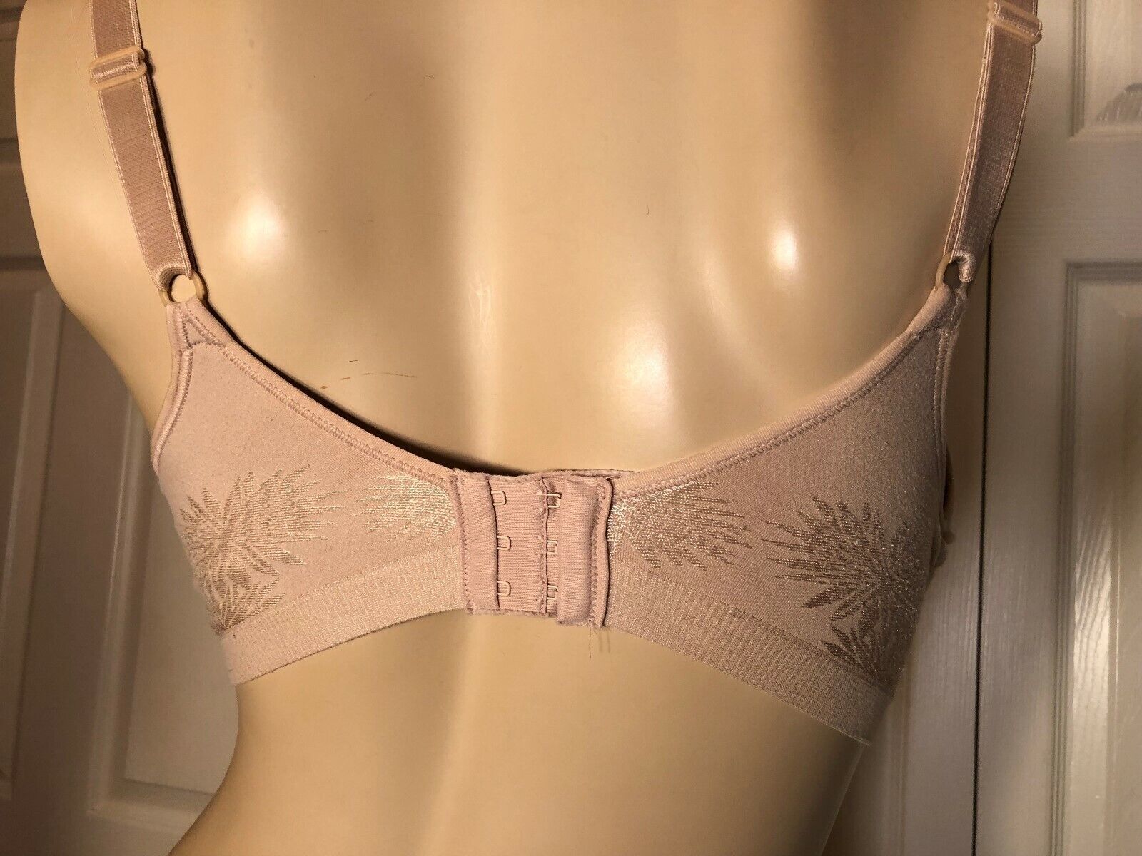 This bra is pre-owned/used and freshly laundered. Model style number 3463. Cups are consistently lined, seamless with a subtle firecracker boom! pattern on the outside in a satin sheen, and wire free. See pictures for your evaluation of condition. Shipping is completely free when 4 or more bras are bought from us at the same time.
