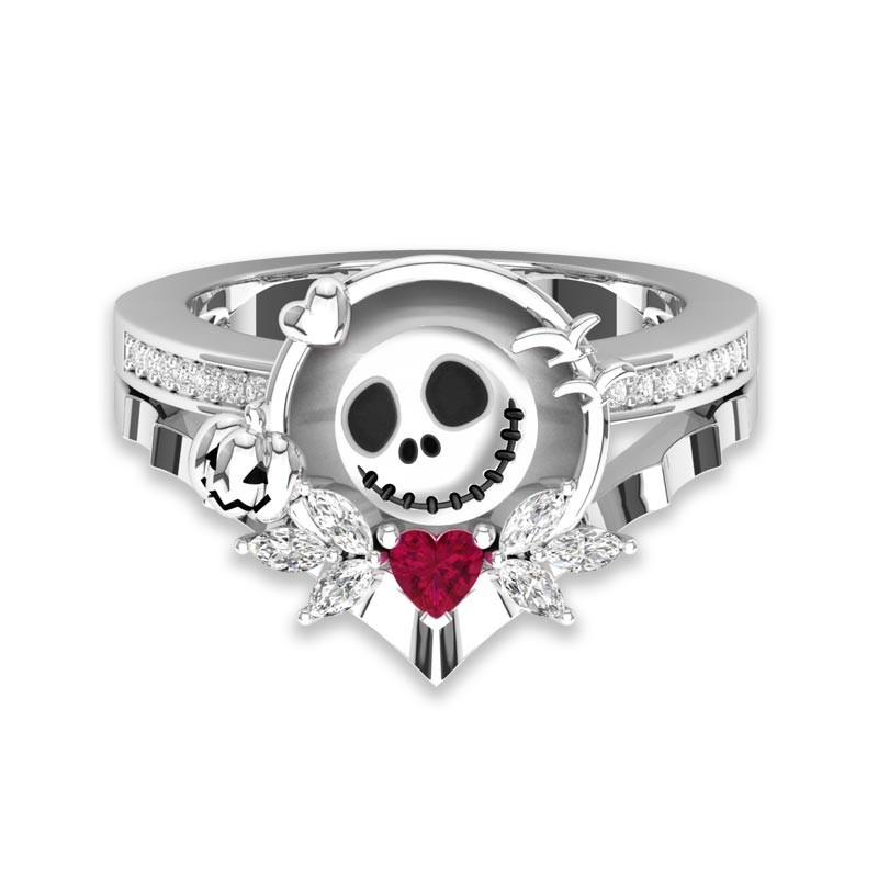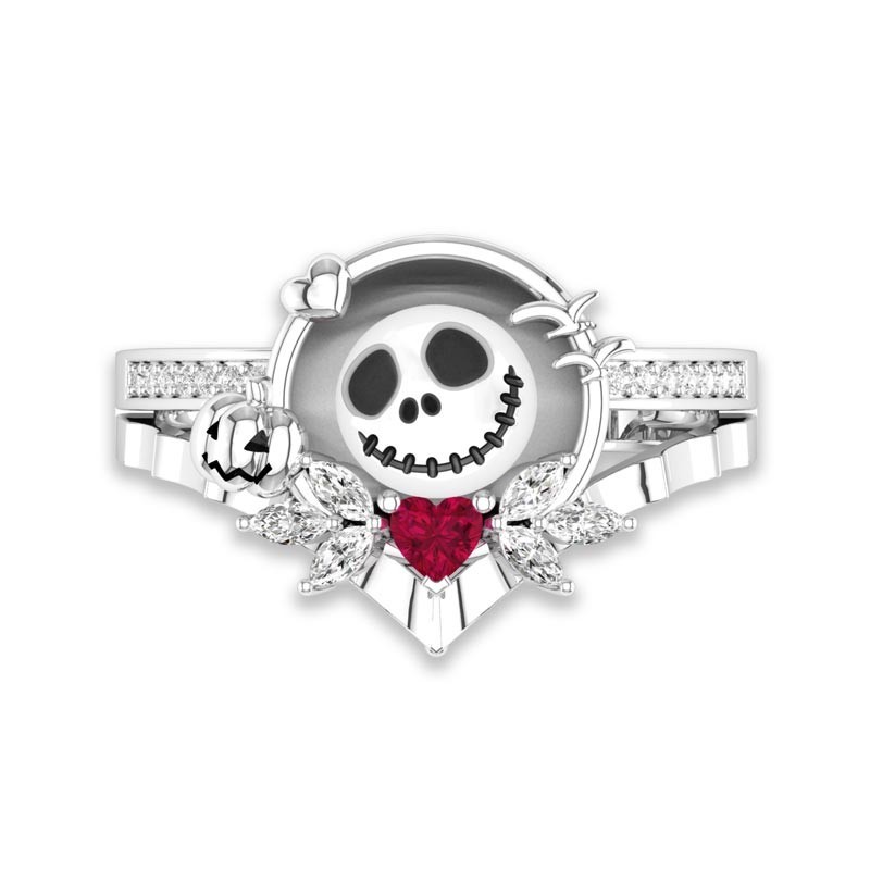 Skull Heart Diamond Rings For Women Pumpkin Halloween Gifts Anniversary Ring