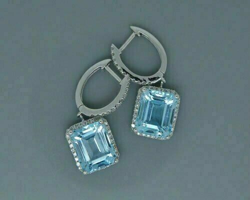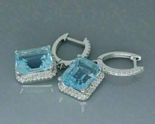 5Ct Emerald Cut Simulated Aquamarine Halo Clip On Earring 14K White Gold Finish