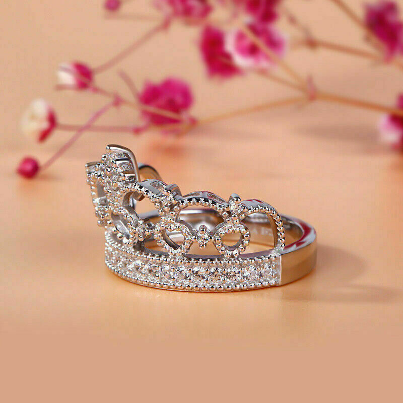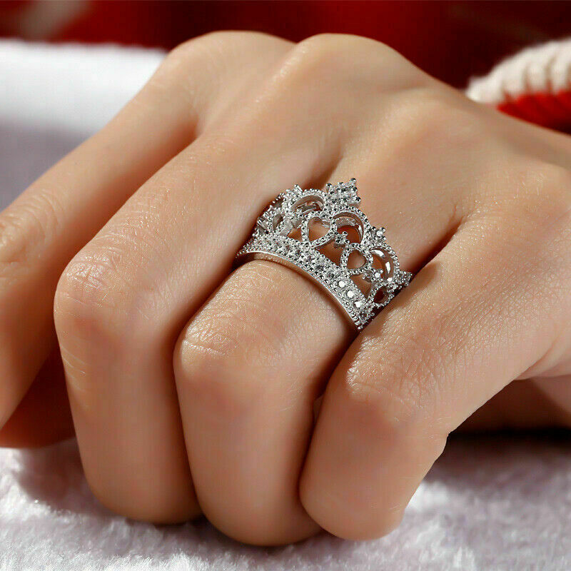 Sparkling 2Ct Round Cut Diamond Crown Engagement Ring 14K White Gold Finish