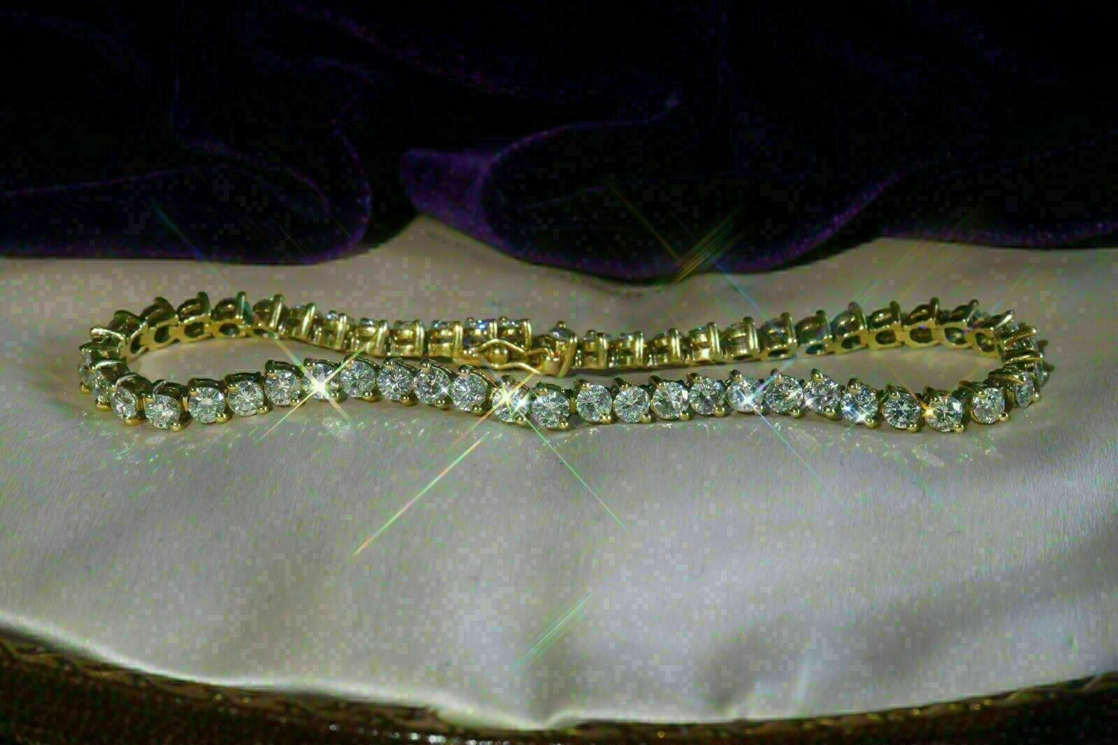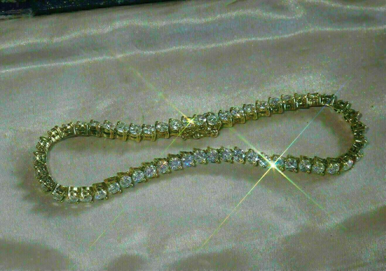 8Ct Redondo Corte Diamante Imitacion Elegante Tenis Pulsera En 14K Oro Amarillo