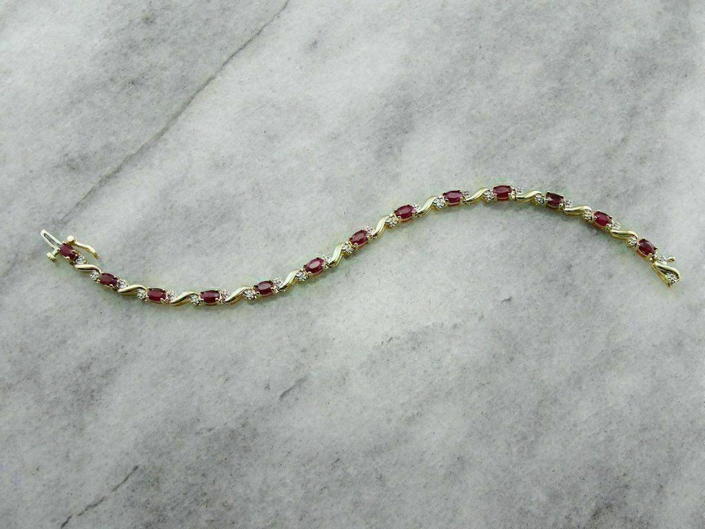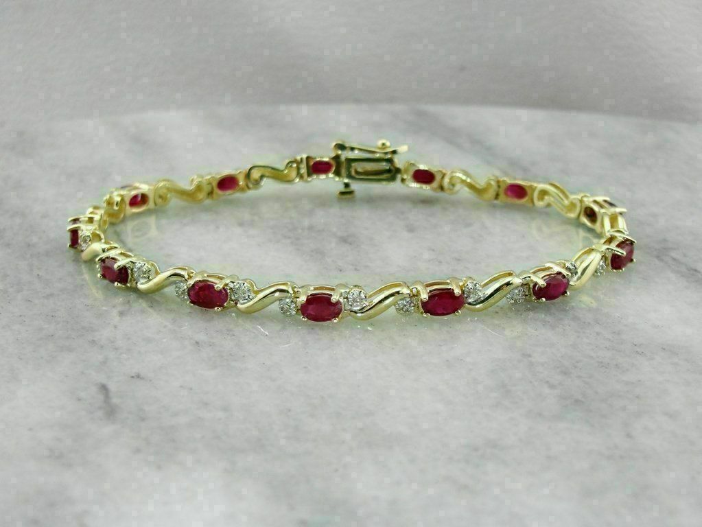 8Ct Oval Geschnitten Rosa Rubin und Diamant Tennis Armband 14K Gelbgold Finish