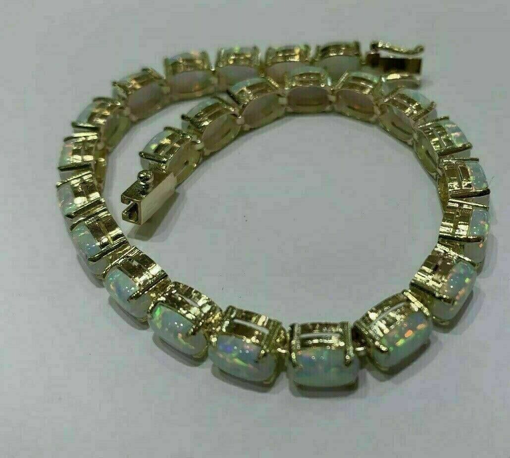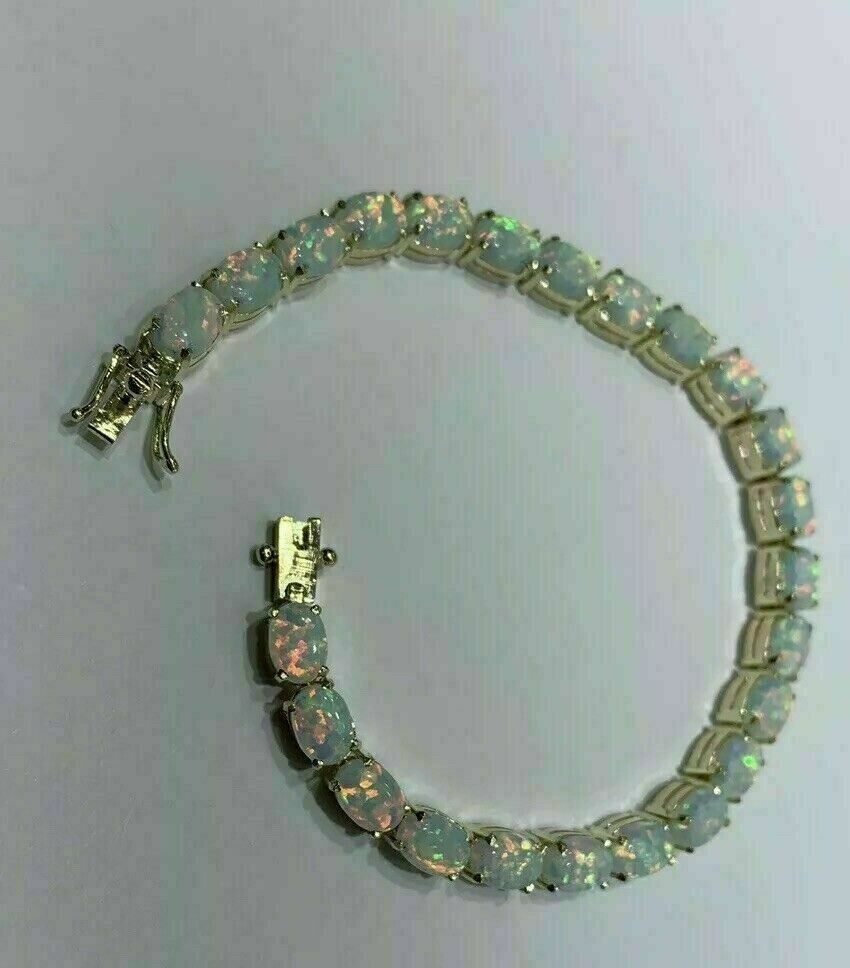 10.00Ct Oval Schliff Labor Erstellt Feuer Opal 7.25 " Tennis Armband 14K