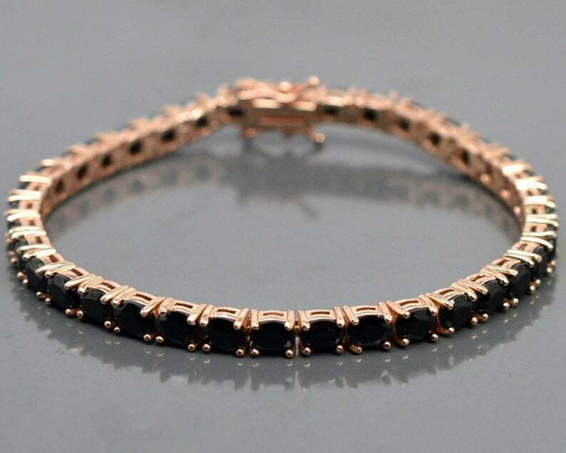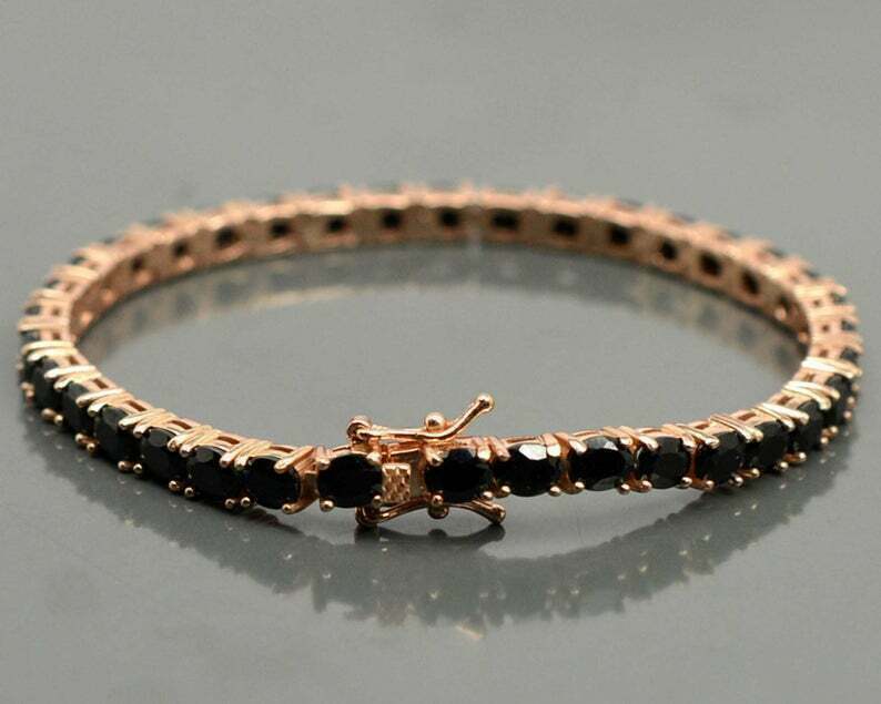 15Ct Rund Schliff Black Diamond Damen Tennis Schone Armband 18K Rose Gold Finish