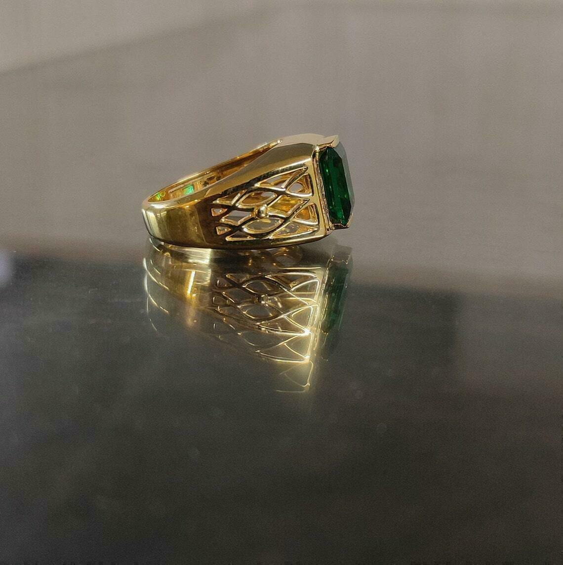 2Ct Smaragd Schnitt Smaragd Herren Solitaire Verlobungsring 14K Gelbgold Finish