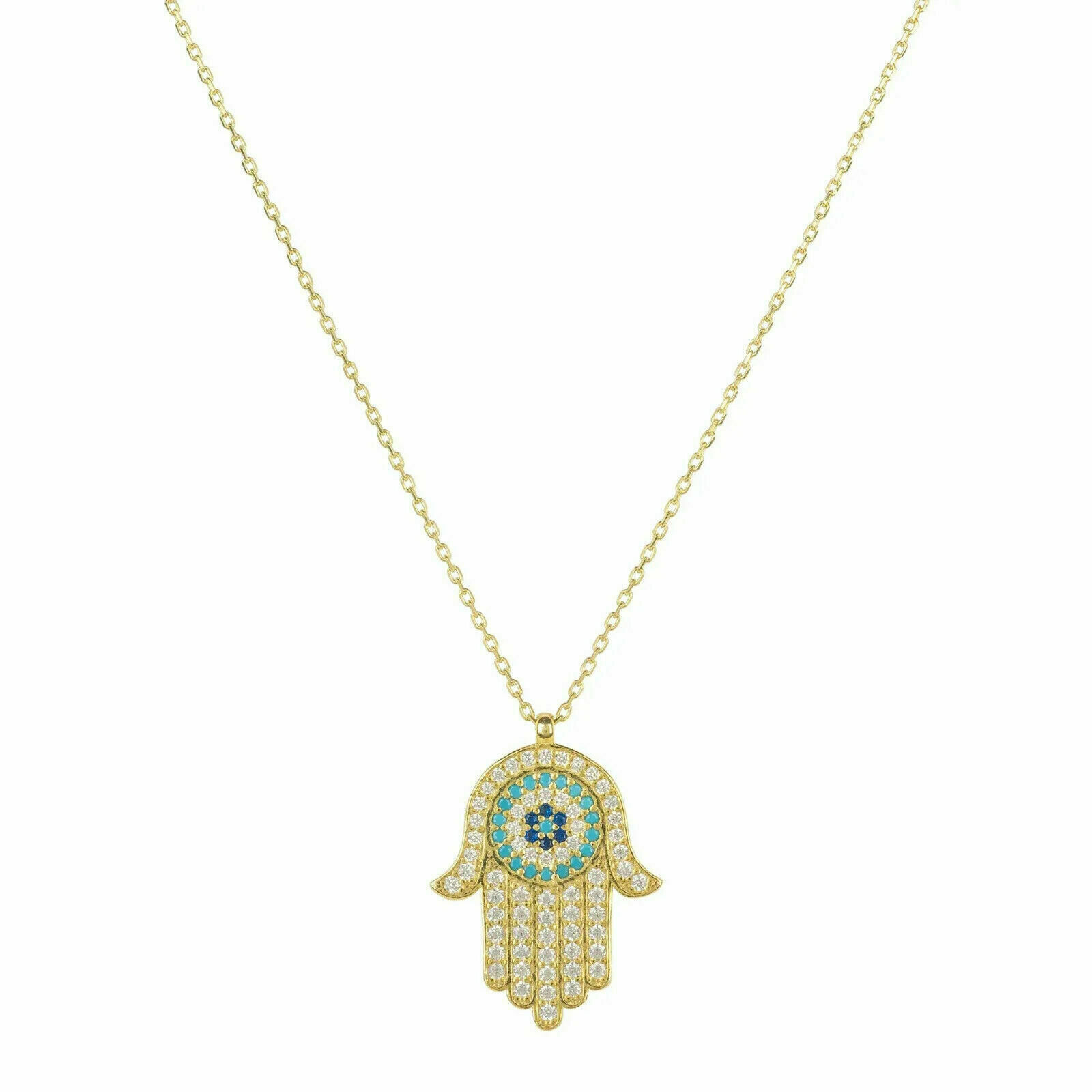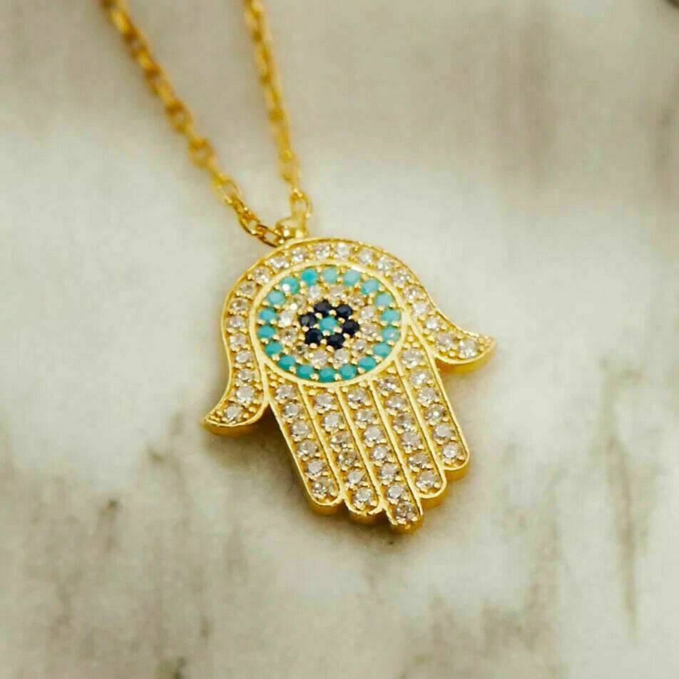 1Ct Rund Schliff VVS1/D Diamant Hamsa Hand Anhanger Charme 14k Gelbgold Finish