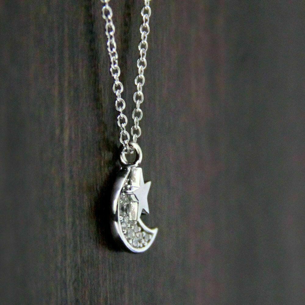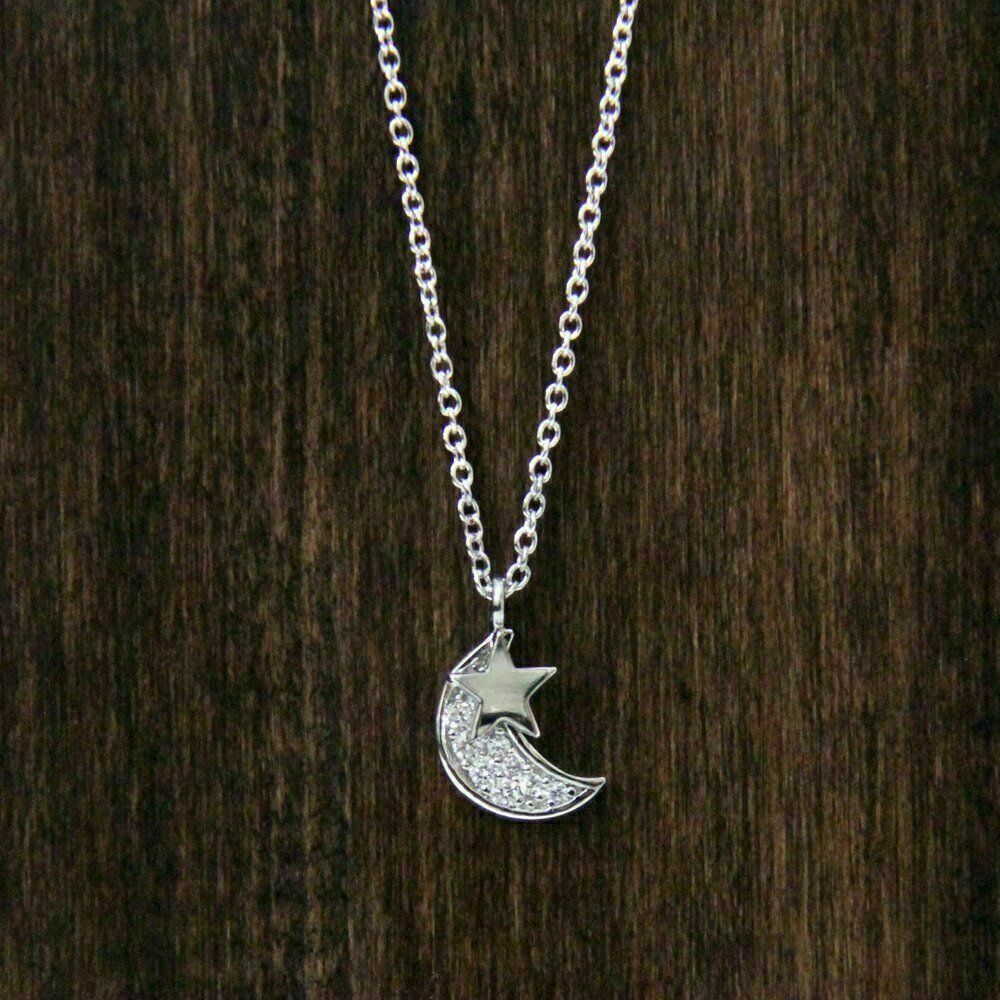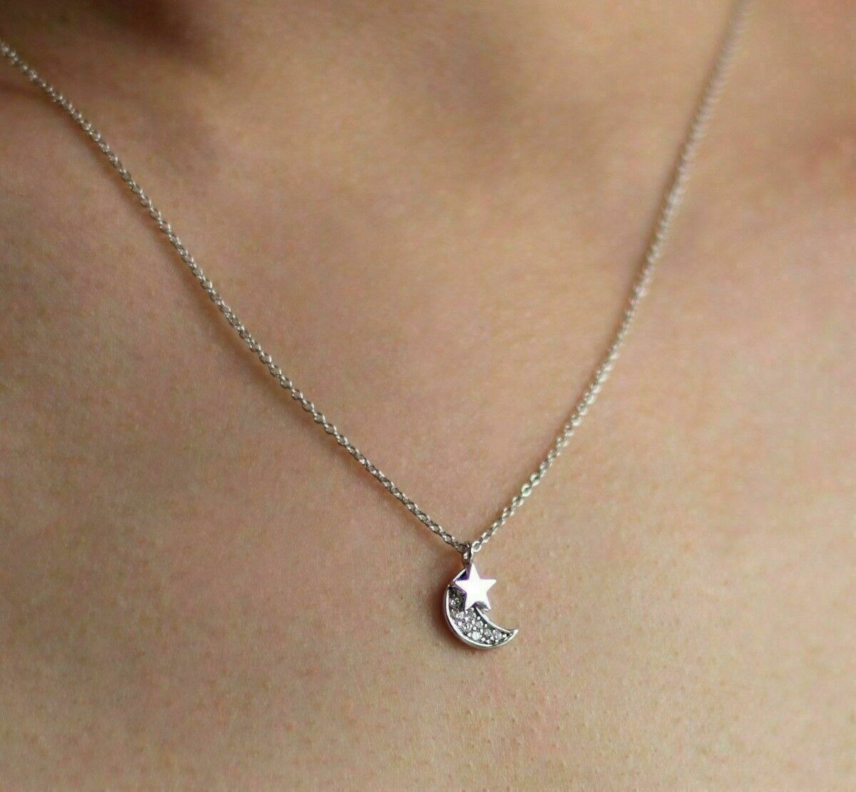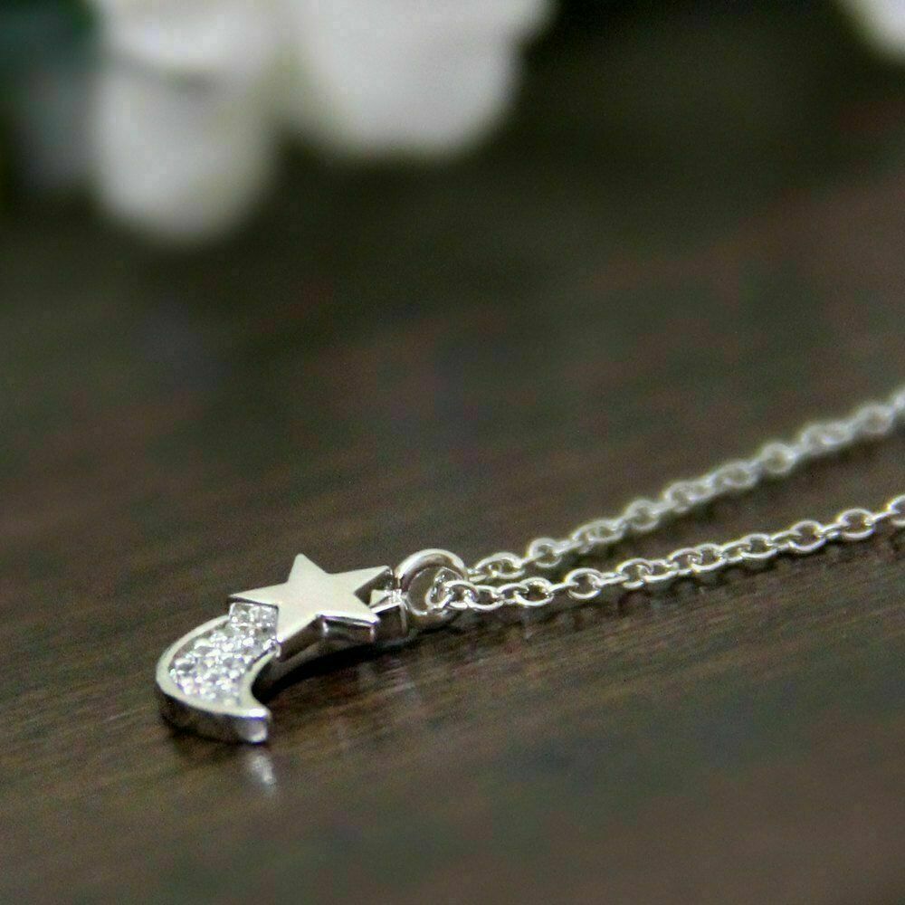 1.20Ct Rund Diamant Mond mit Stern Anhanger 14k Weißgold Finish 18 " Gratis Chai