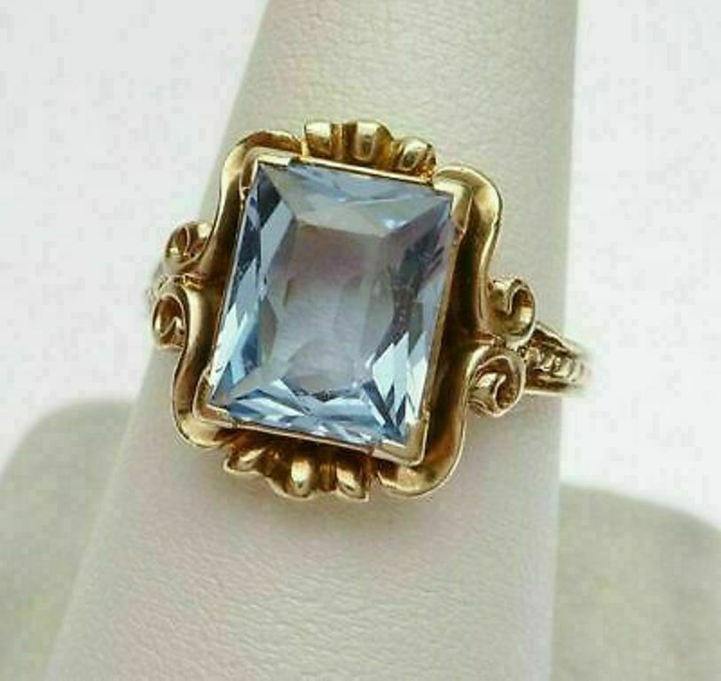 4Ct Smaragd Schliff Aquamarin Diamant Solitaire Vintage Ring 14k Gelbgold Finish