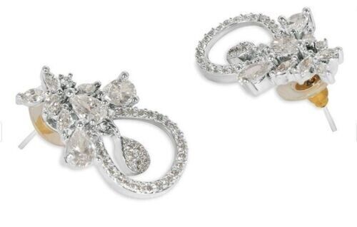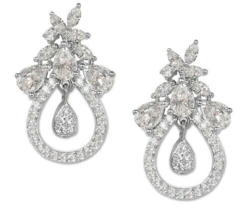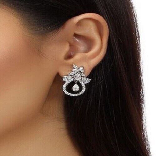 2Ct Redondo Cz Cortado Diamante Largos a Presion Pendientes 14K Oro Blanco