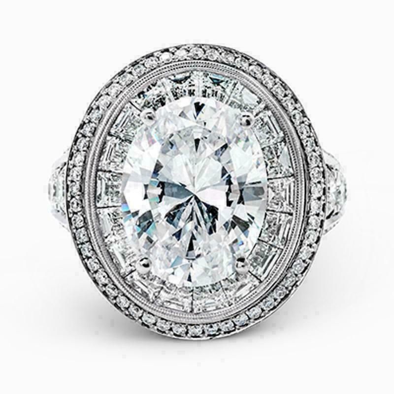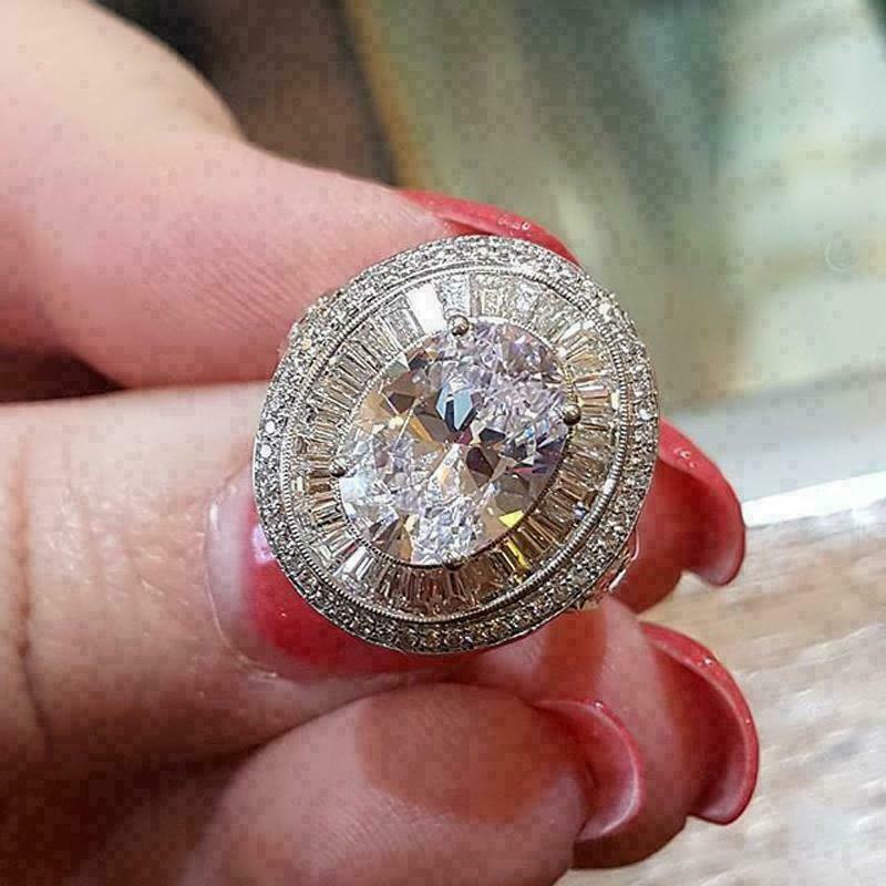 6Ct Oval Schnitt Diamant Halo Cocktail Vintage Verlobungsring 14K Weiß Gold Lack