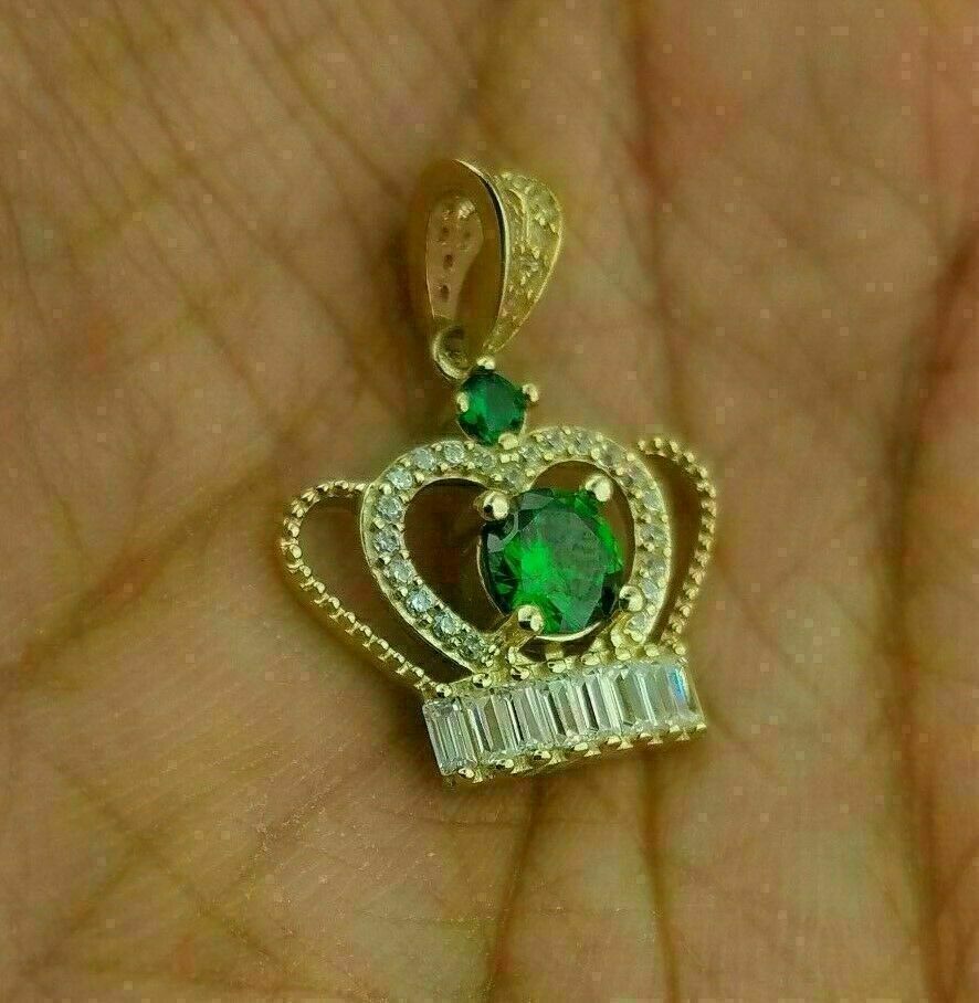 2Ct Rund Schliff Smaragd Diamant Krone Anhanger Free Kette 14K Gelbgold Finish