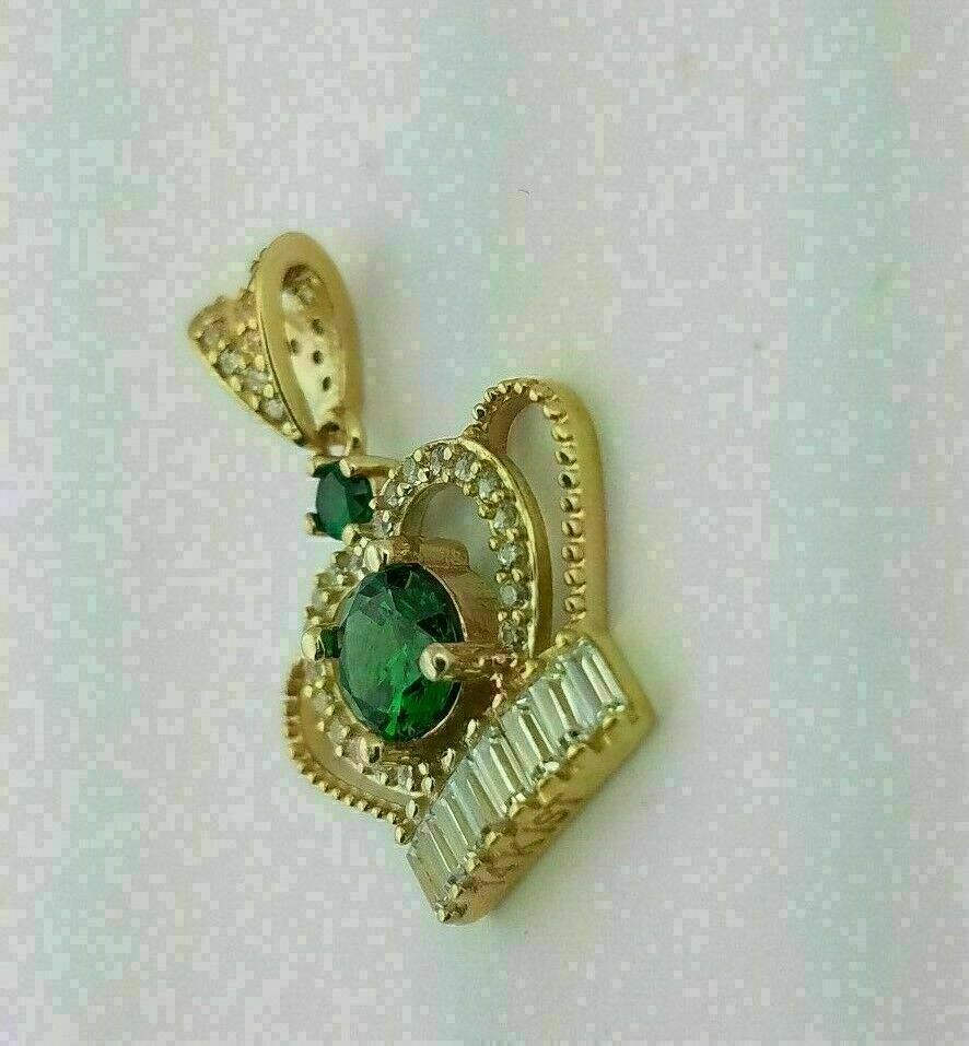 2Ct Rund Schliff Smaragd & Diamant Krone Anhänger Free Kette 14K Gelbgold Finish