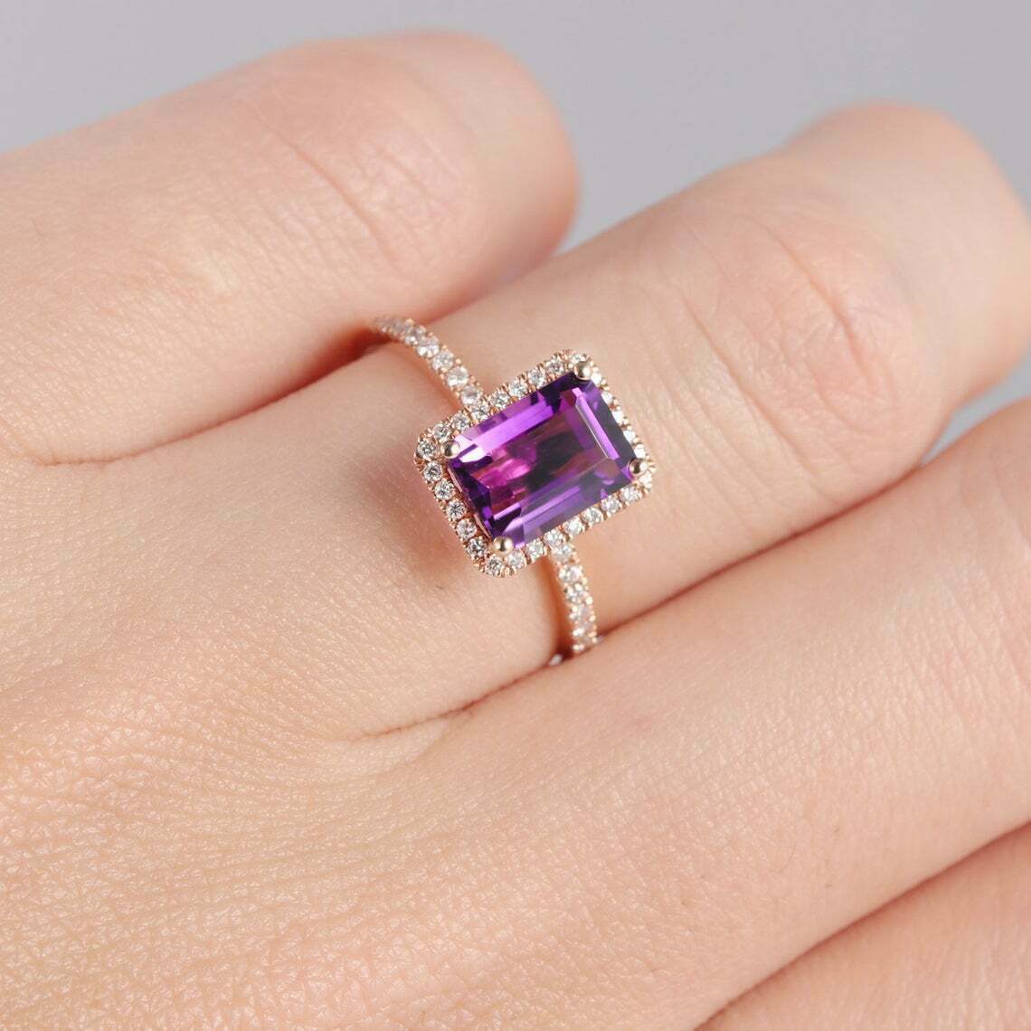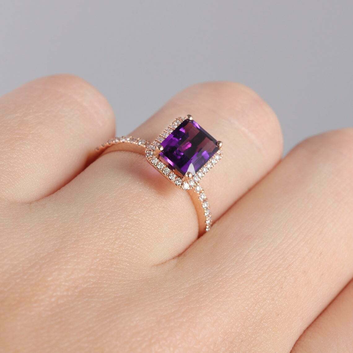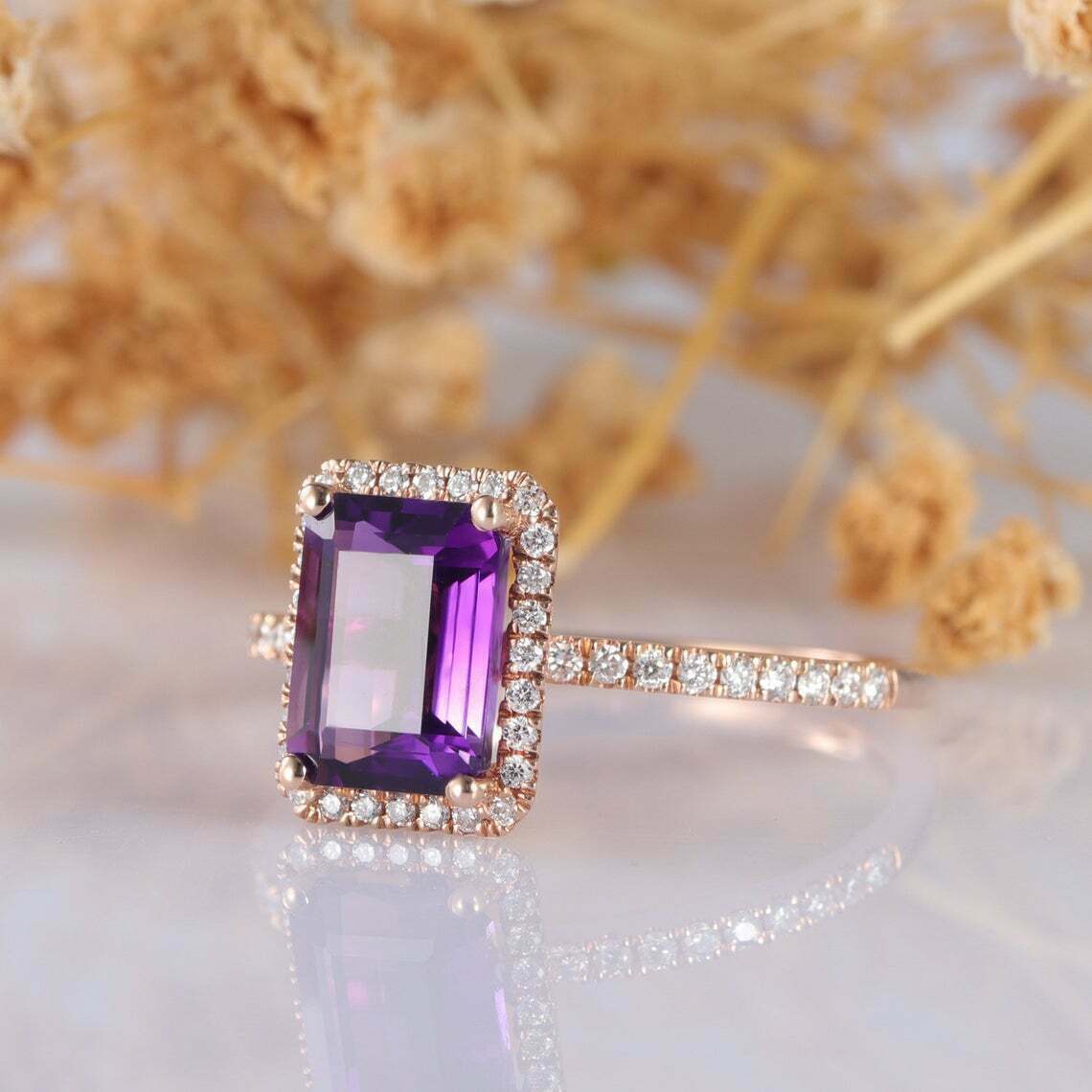 4CT Smaragd Schliff Amethyst & Diamant Halo and 50 similar items