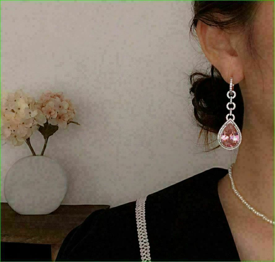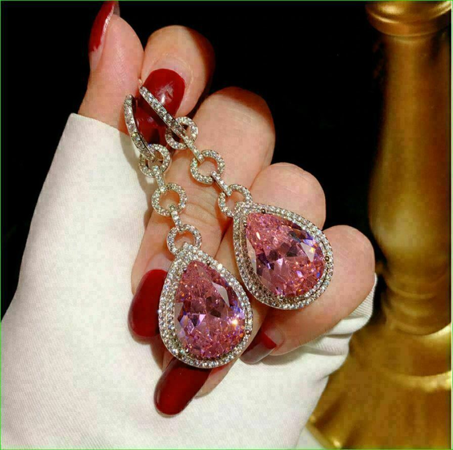 5Ct Tropfenschliff Pink Saphir & Diamant Ohrhänger Ohrringe 14K Weißgold Finish